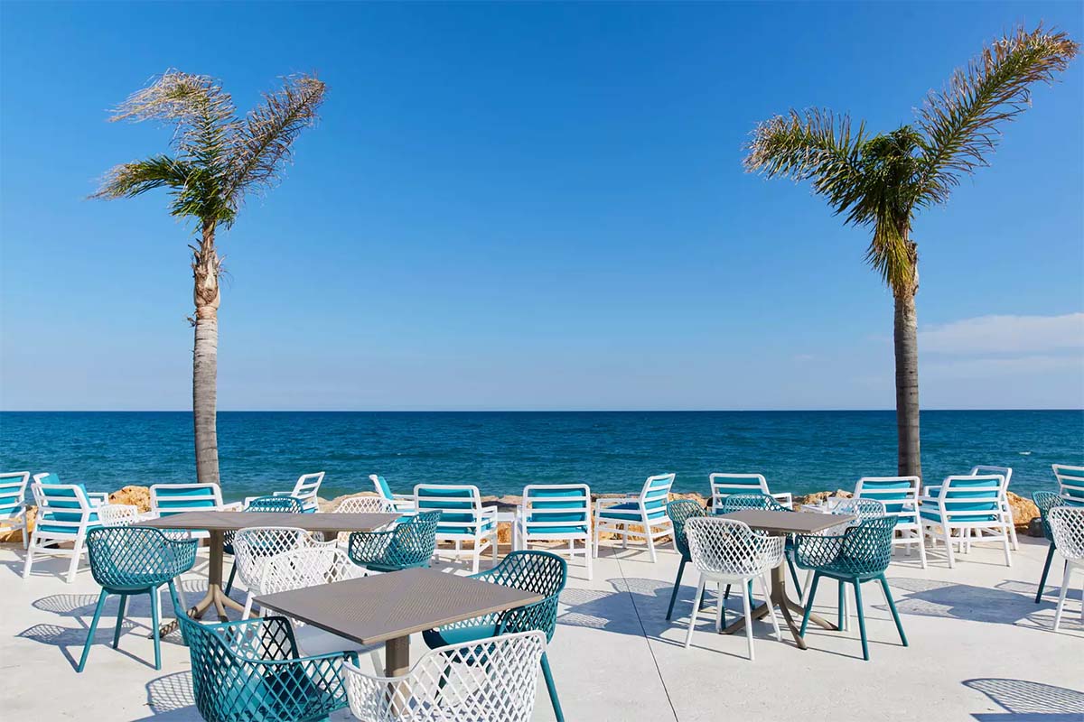Aan eten geen gebrek: in het restaurant met uitzicht op zee staan Mediterrane gerechten op het menu, en bij de strandbar Chiringuito haal je een drankje, ijsje of snack voor tussendoor.