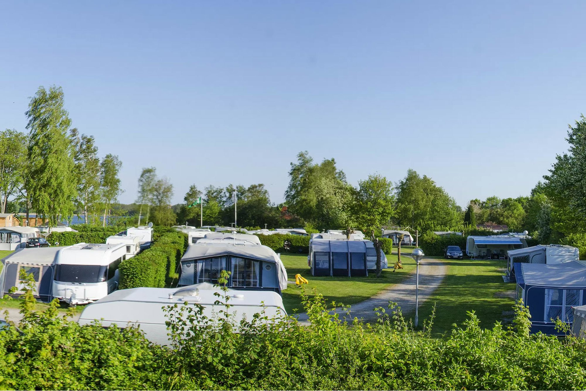 Camping Nysted bij het plaatsje Nysted ligt op korte afstand van het strand aan de Oostzee op het eiland Lolland in Denemarken.. De afgebakende staanplaatsen liggen op kleine velden, omzoomd door hoge heggen.
