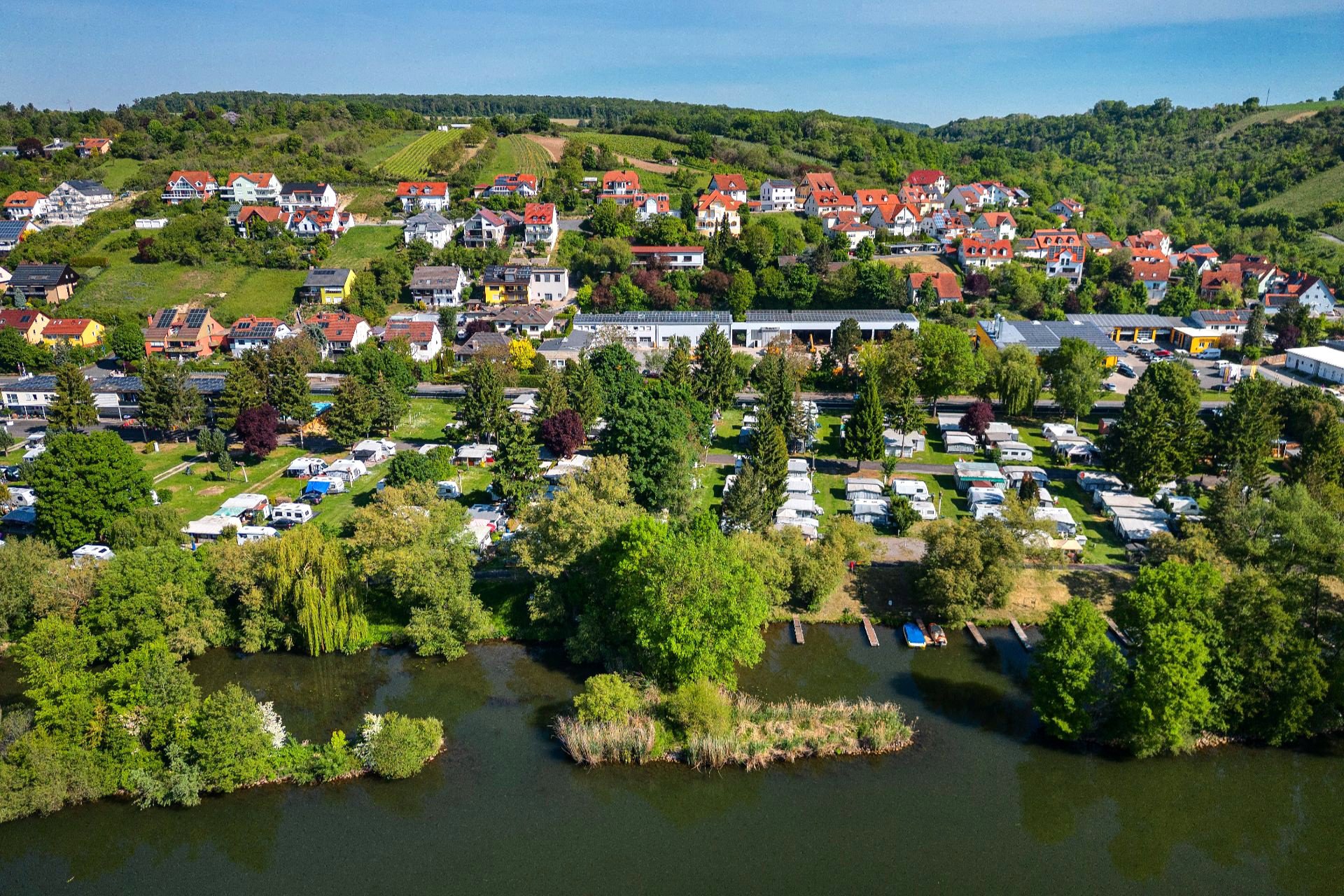 Camping Frickenhausen ligt in het kleine romantische dorpje Frickenhausen, naast de rivier de Main aan de voet van de Kapellenberg en omgeven van wijnbergen.