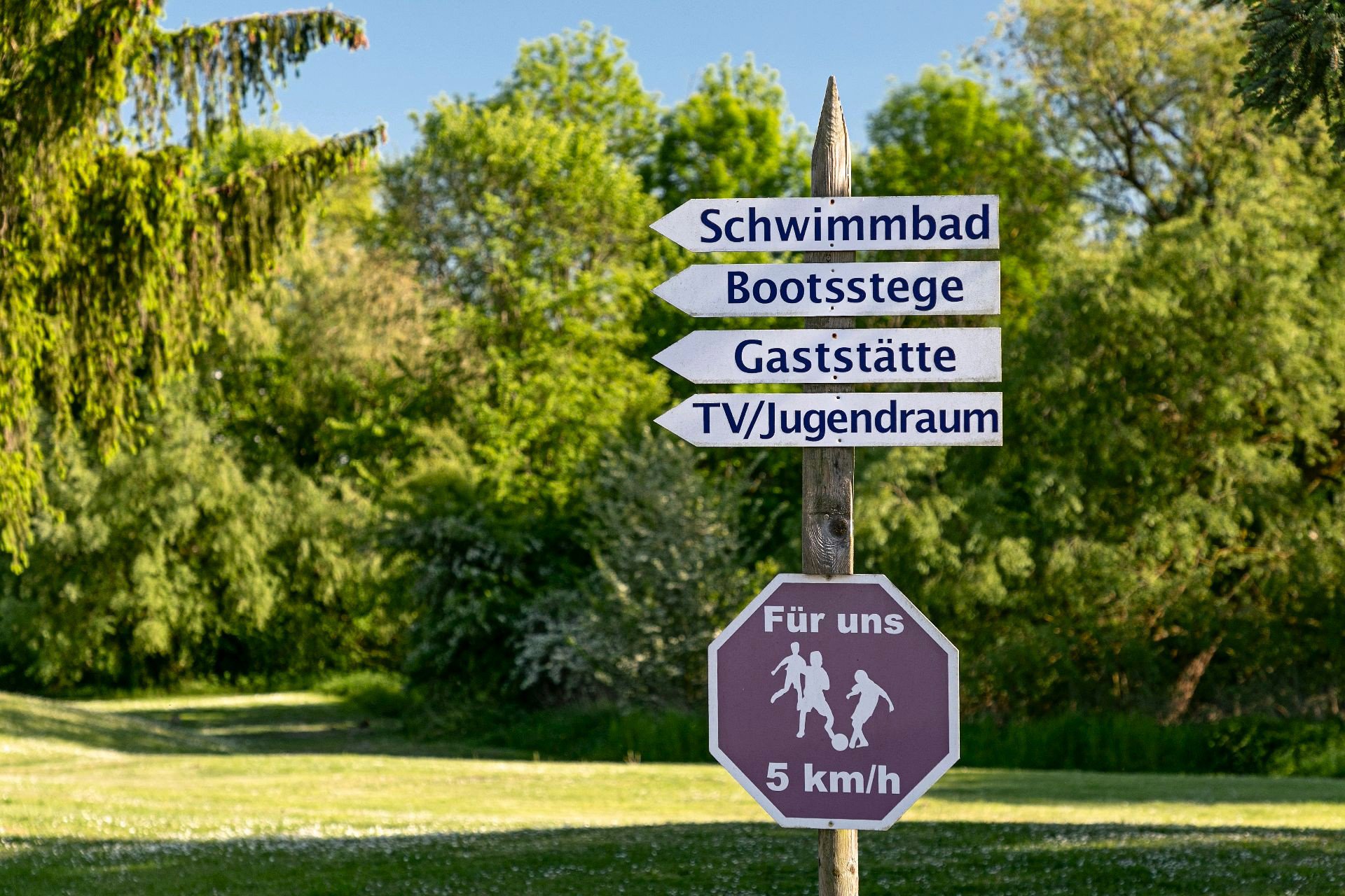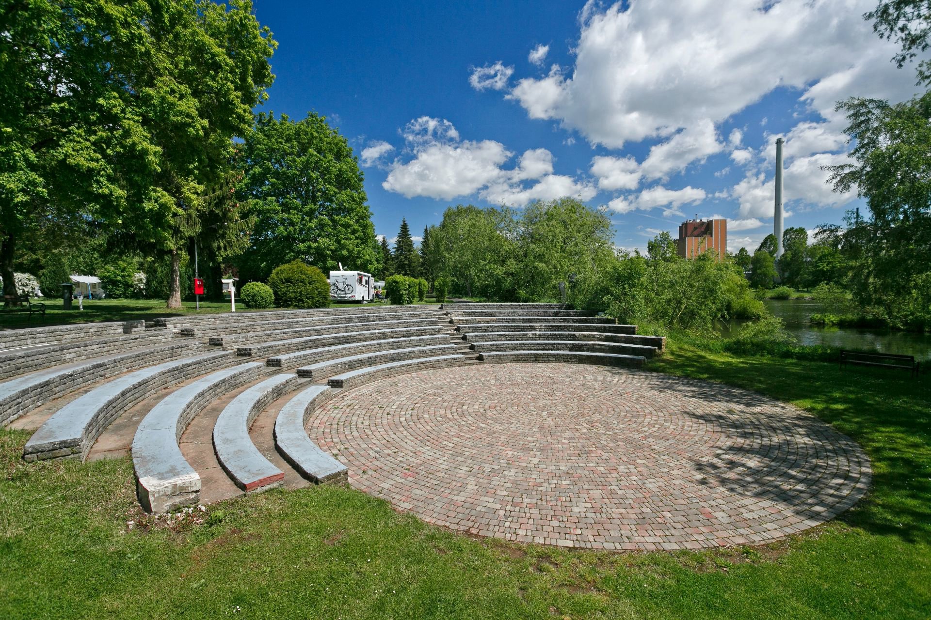 De goed verzorgde 4 sterren camping ligt op het "Roseninsel" en grenst aan een openbaar zwembad.
