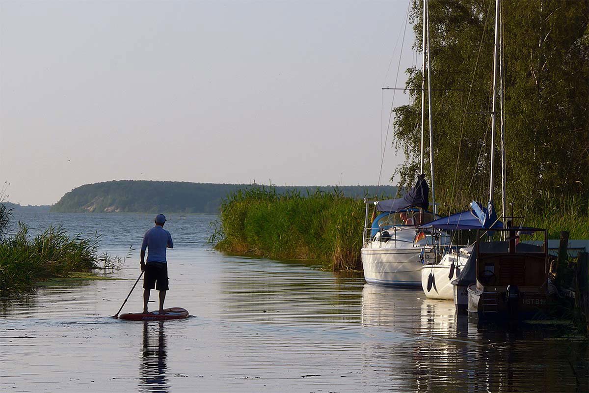 Via een kanaal is het kampeerterrein verbonden met de binnenzee Peenestrom/Achterwasser. Om bij het kleine zwemgedeelte te komen, dat vlak en kindvriendelijk is, loop je 150 meter over een natuurpad. Honden zijn er ook welkom en er is een kleine speeltuin. De watersportschool bevindt zich op het terrein en daar huur je een Sup board, een waterfiets of een surfplank. De sauna vind je in een apart houten gebouwtje.