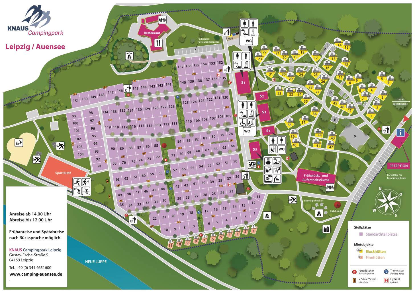 Het KNAUS Campingpark Leipzig Auensee ligt in een van de grootste rivierbossen van Europa. Deze camping ligt op slechts enkele minuten van het leven en de drukte met een verscheidenheid aan bezienswaardigheden, maar dicht bij het beursterrein van Leipzig en snel bereikbaar met de bus, trein, fiets of auto. De camping is voorzien van alle comfort. Afsluitbare koelkluisjes, kookplaten, wasmachines en droger (betaald), afwasbak: alles is aanwezig. Ongeveer 7 km van de camping ligt Leipzig. De stad biedt een interessante combinatie van kunst, geschiedenis, natuur en charme en is zeker een bezoek waard. In het midden van de karakteristieke promenades, binnenplaatsen en passages kun je genieten van de sfeer of gaan winkelen. Leipzig was ook de woon- en werklocatie van Bach, Wagner en Goethe. Natuurlijk mag een bezoek aan ‘Auerbachs Keller’ in de oude stad niet ontbreken. Het ‘Völkerschlachtdenkmal’ ter herdenking aan de Slag bij Leipzig in 1813. Daar vond ongeveer twee eeuwen geleden de beslissende strijd om de bevrijding van Europa plaats.
