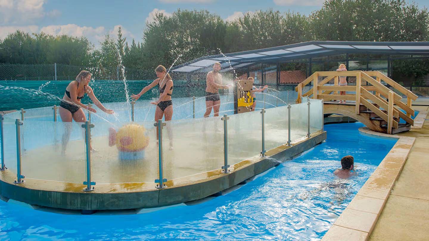 Even afkoelen dat kan volop in een van de twee zwembaden en natuurlijk in het meer. Verder zijn er twee grote glijbanen. Deze viersterrencamping is een ideaal vakantie-adres voor zowel een vakantie met jonge kinderen als met wat oudere kinderen. Er zijn heel veel faciliteiten, maar jong en oud zullen vooral genieten bij het grote meer waar men kan windsurfen en varen (geen motorboten). Voor de hele kleintjes is er een animatieprogramma, minigolf en een apart kinderbad. Op de camping vind je ook een restaurant en bar. .