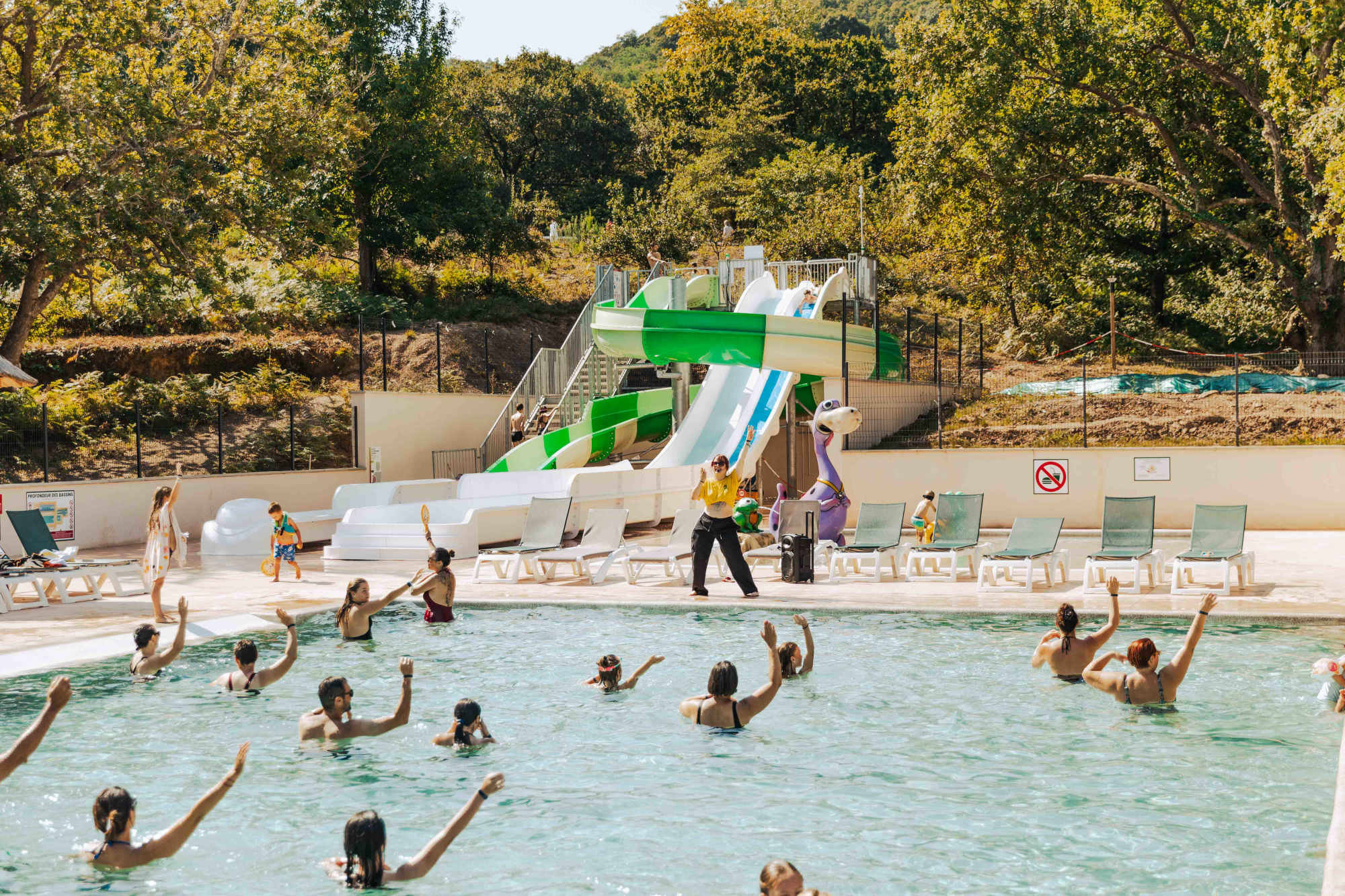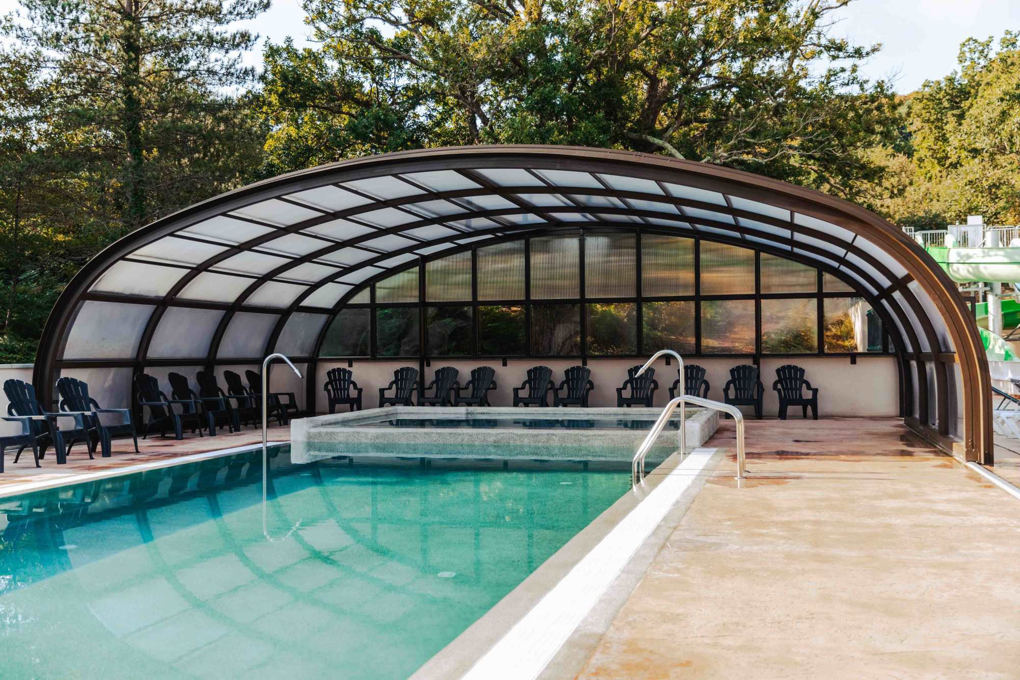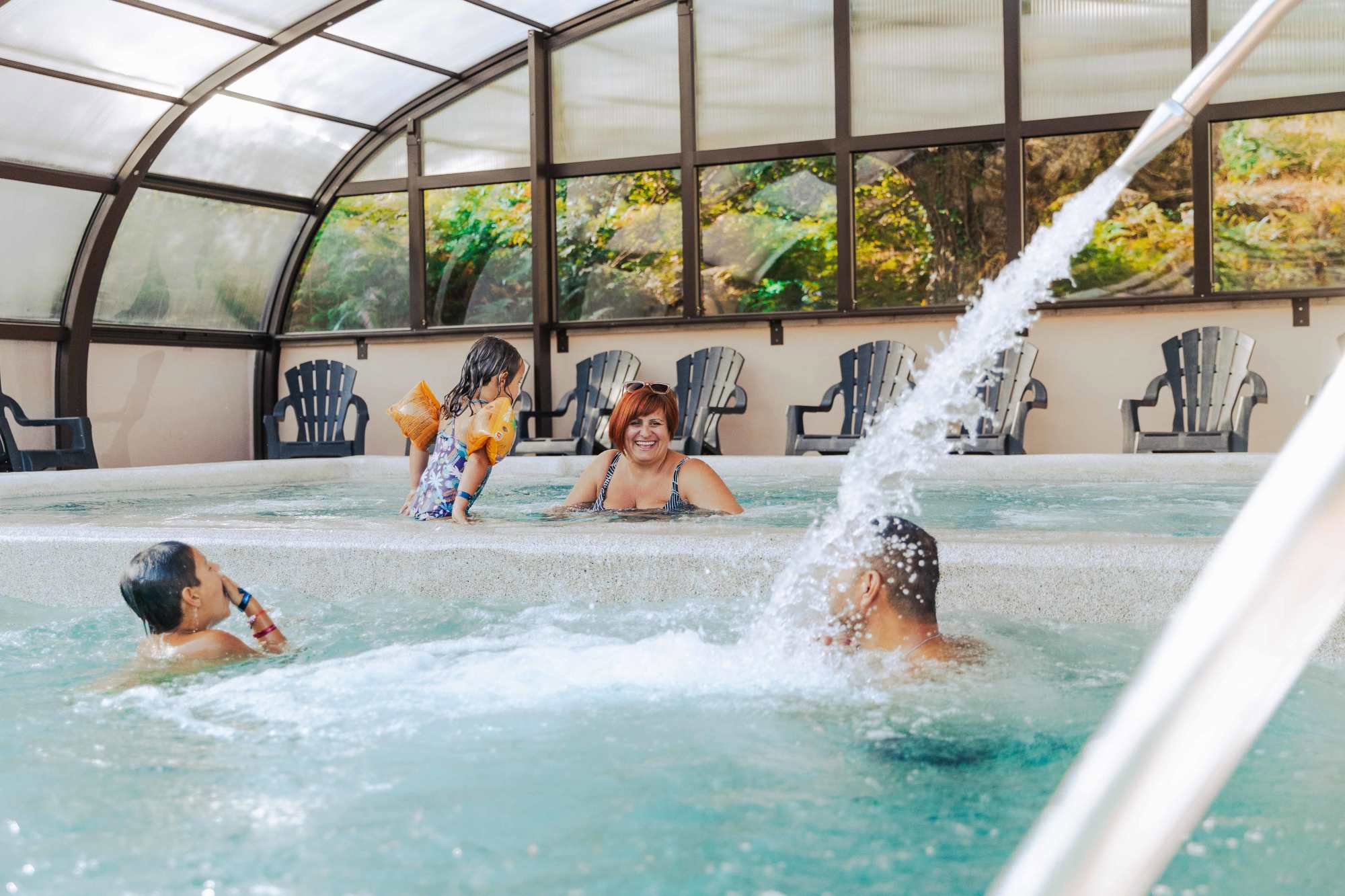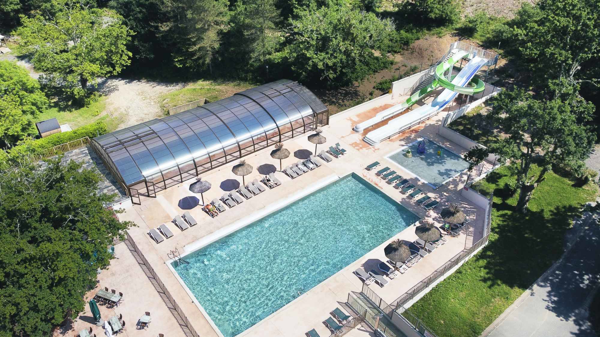 Het zwembadcomplex is de publiekstrekker van de camping. Er zijn verschillende zwembaden te vinden, waaronder een overdekt en verwarmd zwembad. Voor als het even wat minder warm is. Voor de kinderen is er een apart gedeelte met waterspeeltoestellen waar ze heerlijk kunnen spelen. Wie van wat meer actie houdt, kan van de glijbanen afgaan. Als je liever rustig aan doet, kun je terecht in de wellnessruimte. Hier vind je een sauna om even helemaal tot rust te komen na een dag in de buitenlucht. Op het terras om het zwembad heen is er genoeg ruimte om op een ligstoel van de zon te genieten.