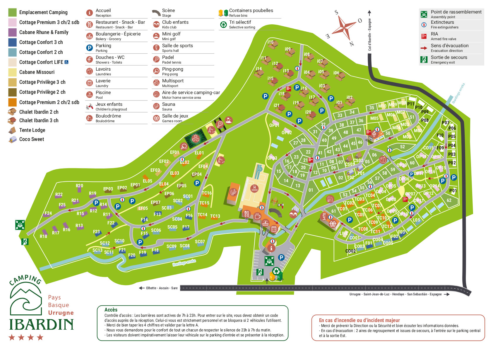 Camping Ibardin ligt in Urrugne, midden in een bos van oude eikenbomen aan de voet van de Pyreneeën. Het is een fijne plek waar je niet alleen geniet van de natuur, maar ook van de gezelligheid op de camping. Vanaf je plekje kijk je met een beetje geluk direct uit op de bekende berg La Rhune. De ligging van Camping Ibardin is perfect: je bent zo op het grote strand van Hendaye, dat op slechts tien minuten rijden ligt. En ook de Spaanse grens is heel dichtbij, het is hierdoor een prima startpunt om zowel de Franse als de Spaanse kant van Baskenland te verkennen.