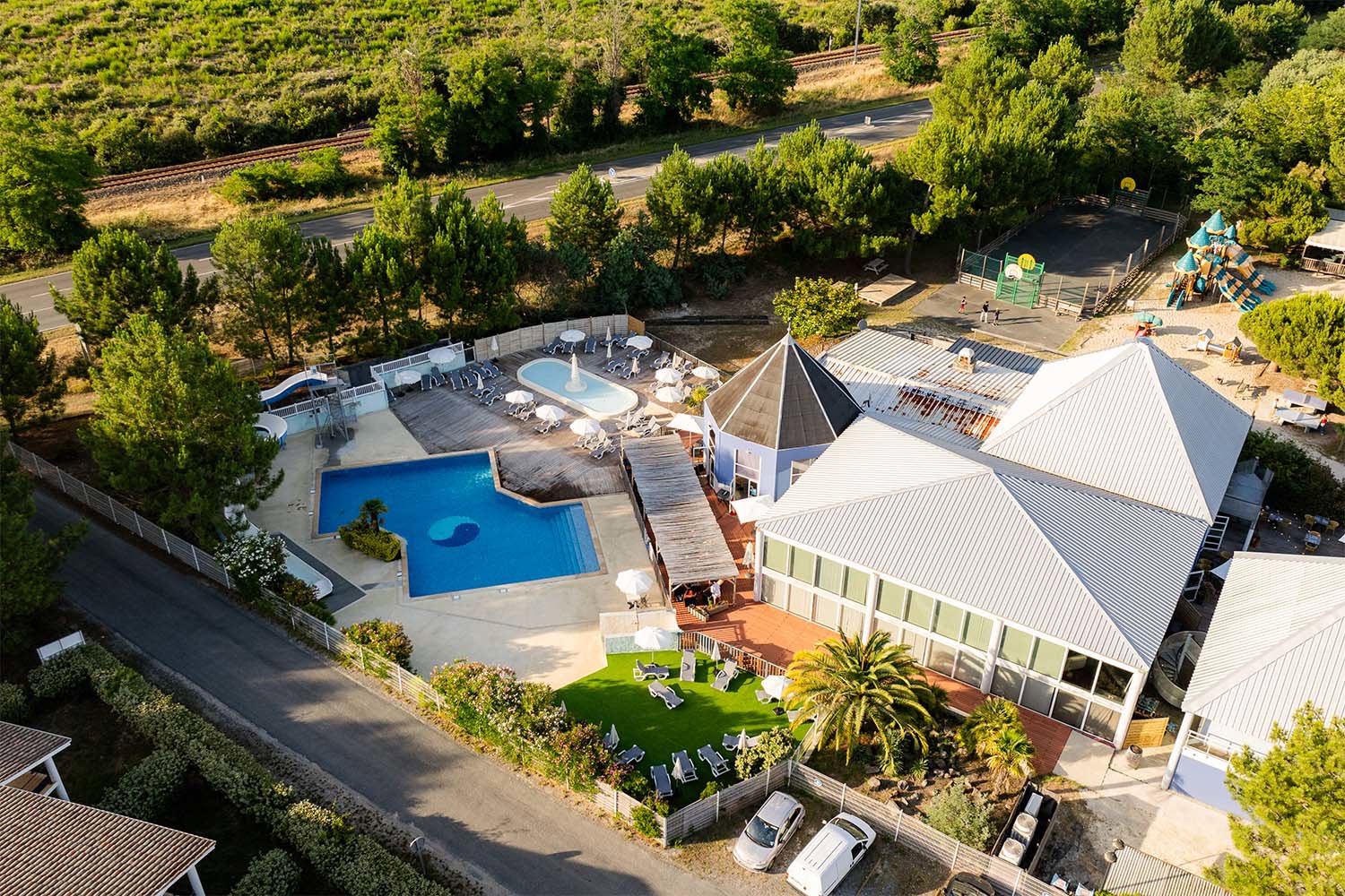 Behalve een fijn buitenzwembad met glijbanen is er ook een overdekt zwembad, wel zo handig bij minder weer. In het hoogseizoen is er een leuk programma voor jong en oud. Verder liggen de stranden er geweldig bij in dit gebied. Voor een hapje en een drankje kun je ook op de camping terecht. Wil je echter tot rust komen, dan kun je meedoen aan yoga of relax oefeningen in het zwembad. ’s Avonds zijn er diverse keren per week feestavonden met o.a. dans, muziek en theater.