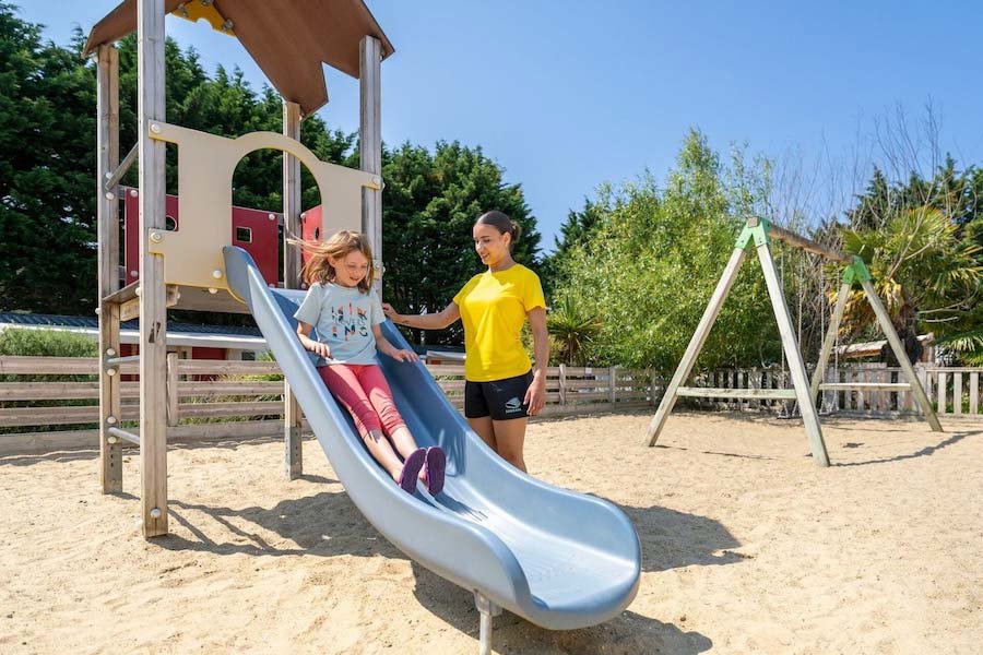 Het fijne zandstrand l'Anse du Stole ligt vlakbij, en de camping zelf behoort bij het dorpje Lomener waar allerlei voorzieningen zijn (supermarkt, bars, restaurants, apotheek, dokter, kapper, bankautomaat, bakker). Het is een ideaal vertrekpunt voor uitstapjes in het departement Morbihan en zuidelijk Finistère.