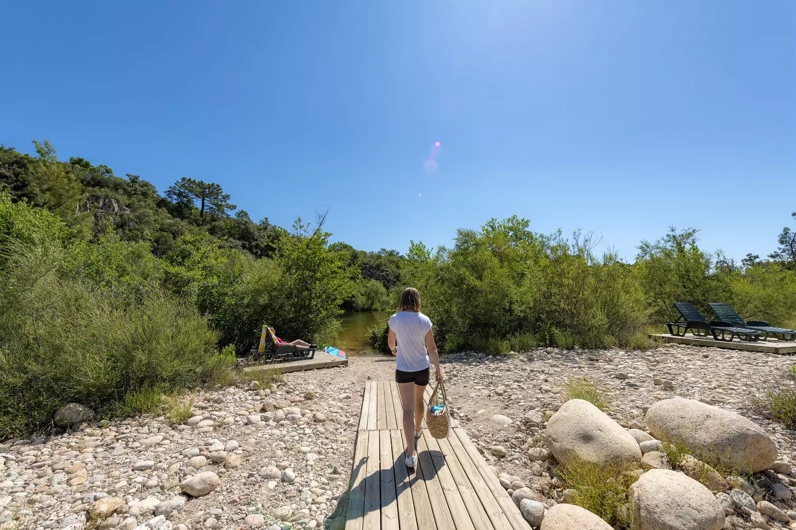 Prachtig gelegen park tussen de bergen (mooie wandelroutes) en de zee 15-40 minuten) met veel prachtige baaitjes. Park grenst aan een rivier (eigen pad) waar het heerlijk vertoeven was met lekker water, vlondertjes en ligbedden. Diverse supermarkten in de buurt. Restaurant op camping slechts eenmaal bezocht, matig. Ons gehuurde chalet met veranda was helemaal top. Niets gemist.
