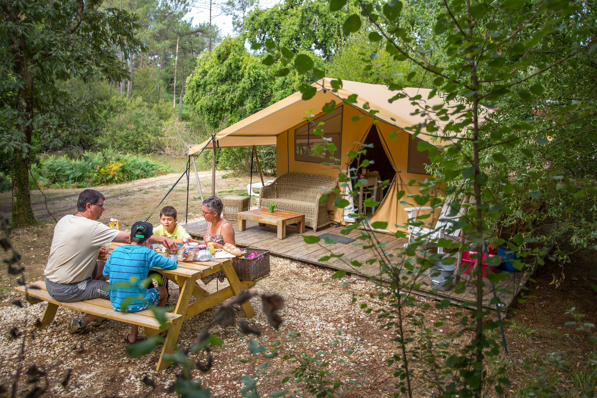 Ideaal voor kampeerders die met volle teugen van het buitenleven willen genieten met de luxe die ze thuis gewend zijn! Wat dacht je van een luxueuze lodge op het water? De l'Aqualodge Nature drijft op het meer (aan de kant bevestigd met een touw), toegankelijk via een loopbrug. Ontspannen genieten op het terras met een prachtig uitzicht . Verder vind je in de lodge een toilet, douchecabine, een tweepersoonsbed en een stapelbed. Dat wordt een sowieso een leuke ervaring.