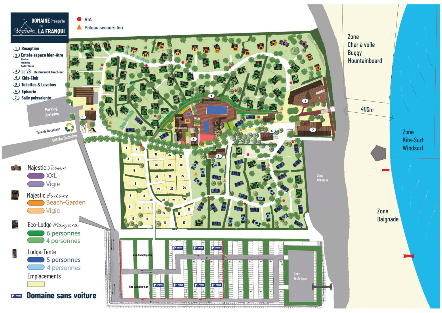 De Languedoc een mooie Franse regio met kilometerslange zandstranden. Glampingcamping Domaine la Franqui ligt aan het strand van des Coussoules en bij het binnenmeer L'Etang de la Palme op een mooi schiereiland. Hier sta je midden in de natuuur en de zee aan je voeten.