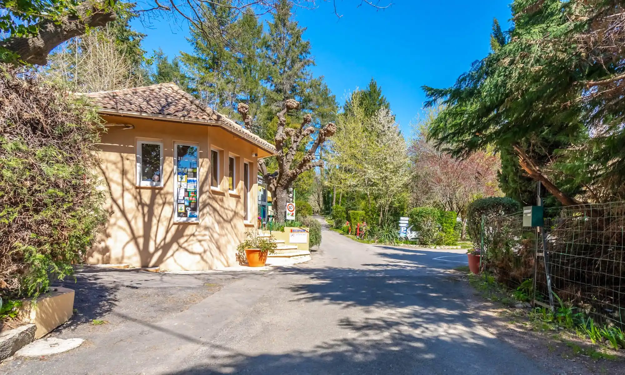 De camping is terrasvormig en ligt in een heuvelachtig en glooiend landschap. Doordat er zo veel gevarieerde en groene begroeiing is, is er voldoende schaduw op de camping. Reis je met eigen tent, camper of caravan, dan boek je een van de vlakke kampeerplaatsen die veelal terrasvormig zijn. Vaak is je plaats afgebakend door struiken, bomen of muurtjes. De meeste plaatsen bieden voldoende privacy.