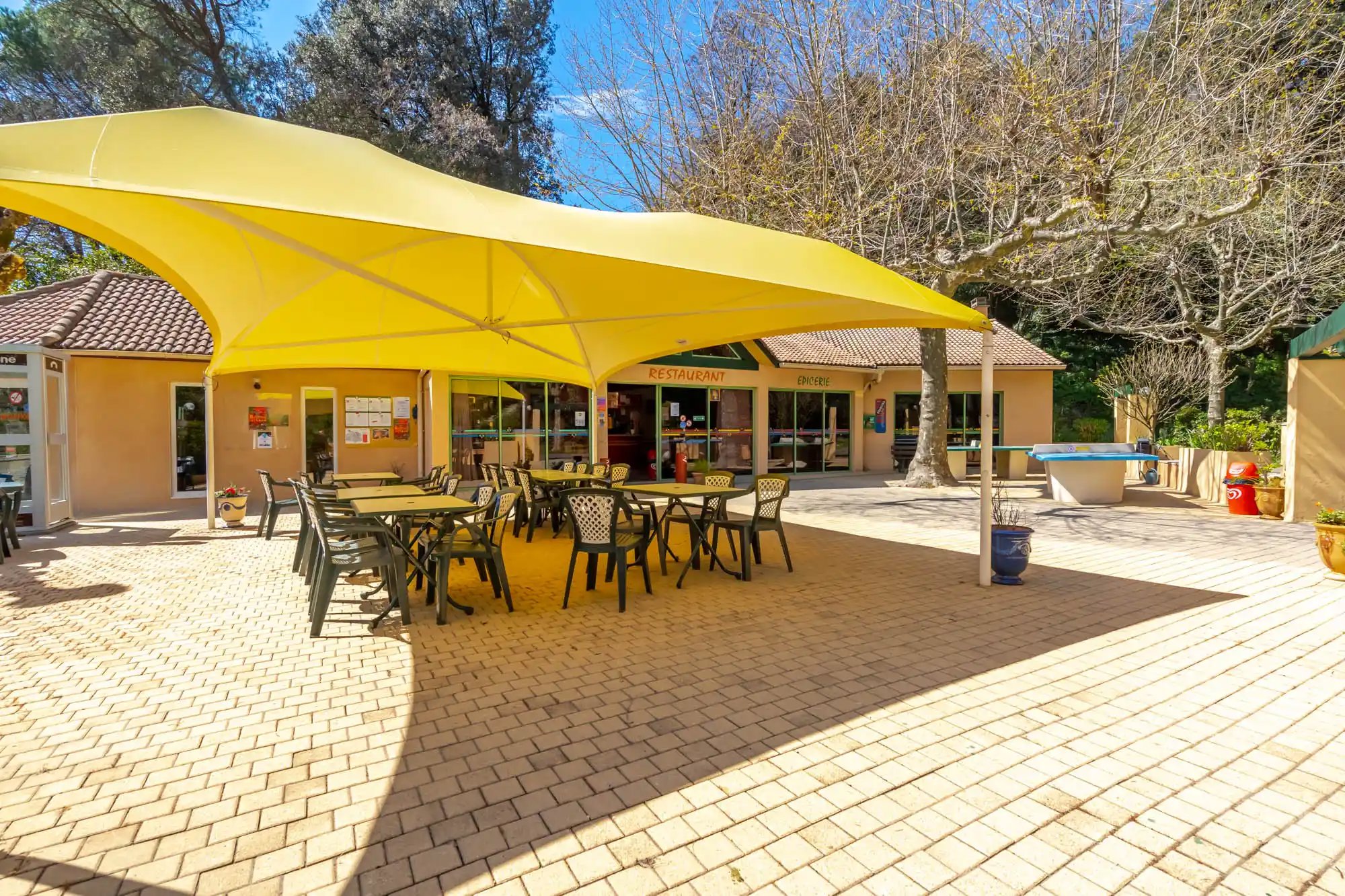 Aan het zwembad kun je lekker zonnen of lezen, en in het aparte kleuterbad kun je met de kleintjes samen in het water spelen. Tafeltennis, jeu de boulen, plezier maken in de speeltuin, een potje volleyballen… je hoeft hier niet stil te zitten. Verse broodjes en croissantjes haal je ’s morgens bij de snackbar. Later op de dag kun je er genieten van een ijsje of een afhaalmaaltijd bestellen. In het restaurant kun je wat uitgebreider eten. Af en toe zijn hier ook gezellige muzikale avonden. In de winkel zijn heerlijke regionale producten te koop.