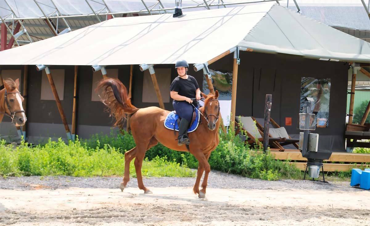 François, voormalig topruiter, en Blanche ontvangen je met open armen en delen graag hun passie voor paarden. Kinderen helpen mee met borstelen, knuffelen de pony’s en maken onder begeleiding een eerste ritje of wandeling. Rondom de manege is volop ruimte om te spelen, met een speelweide en eenvoudige spelletjes in paardenthema. Ondertussen genieten ouders van de rust, een goed gesprek of een moment bij het kampvuur. Afhankelijk van het seizoen worden er gezellige pizza-avonden of barbecues georganiseerd, precies zoals je hoopt op vakantie.
