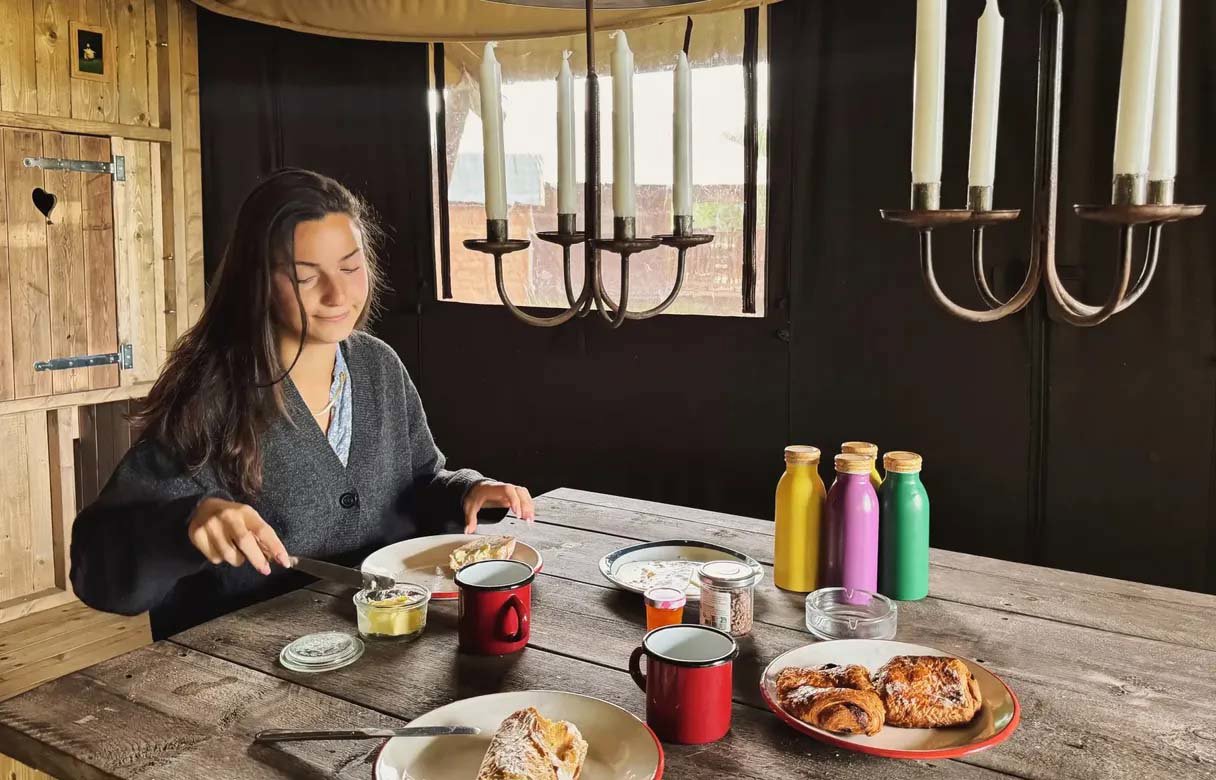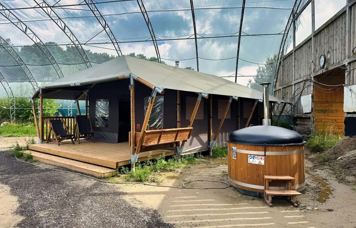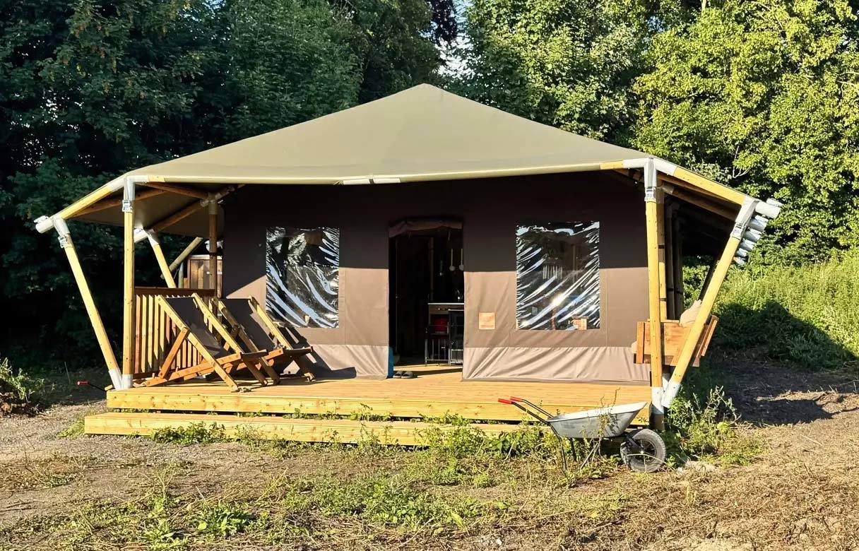 Je logeert in een comfortabele, ingerichte tent op het erf van de boerderij