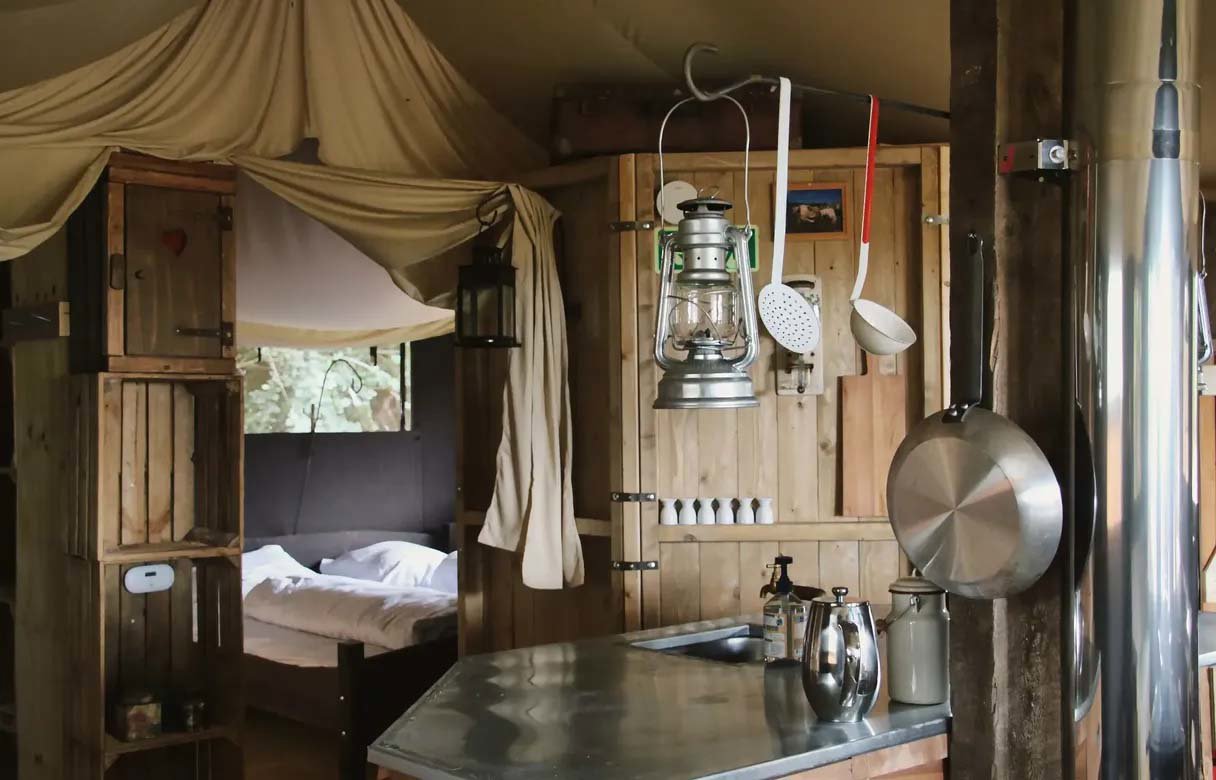 Het tenthuisje is van alle gemakken voorzien, met fijne bedden, een praktisch keukenhoekje en een eigen terras. Geen gesjouw met kampeerspullen, maar wel het echte buitengevoel. Vanuit je verblijf kijk je uit over de weilanden, waar de paarden rustig grazen en kinderen al snel hun favoriete pony uitkiezen.