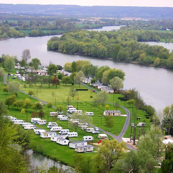 Deze middelgrote, mooi gelegen Franse camping ligt langs de Seine in de Haute-Normandie. De camping ligt op een schiereiland in de Seine. Het stadje Les Andelys ligt ten noorden van deze camping en is te voet te bereiken. Boven de boomtoppen van de camping zie je de kasteelruïne van Chateau Gaillard liggen. Op deze camping combineer je kamperen aan de rivier met een bezoek aan het pittoreske Les Andelys, dat 300 meter verder ligt.