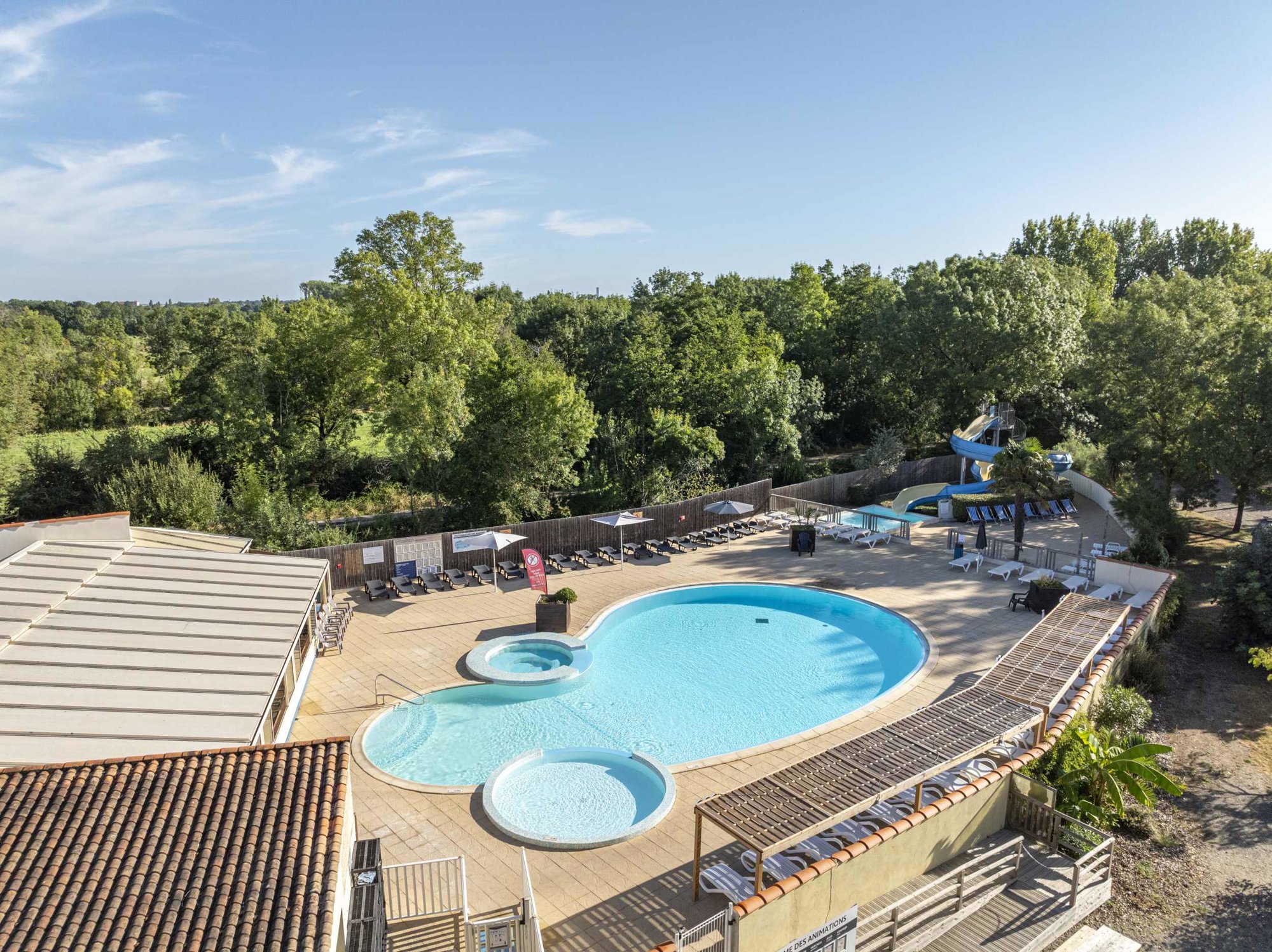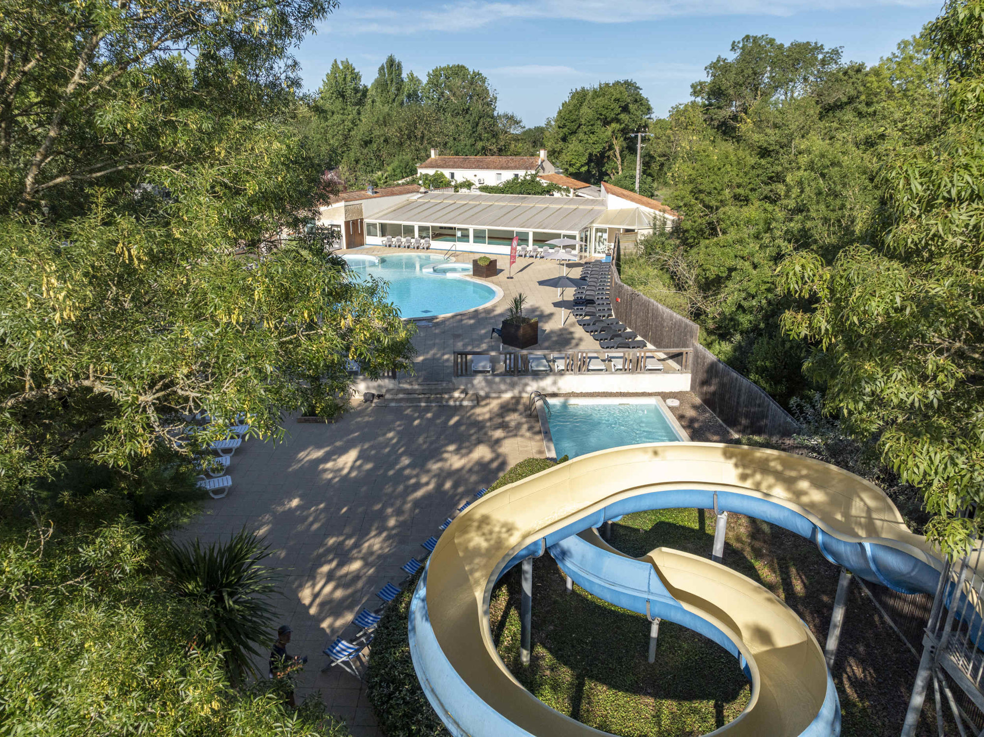 - Binnen- en buitenzwembad met glijbaan