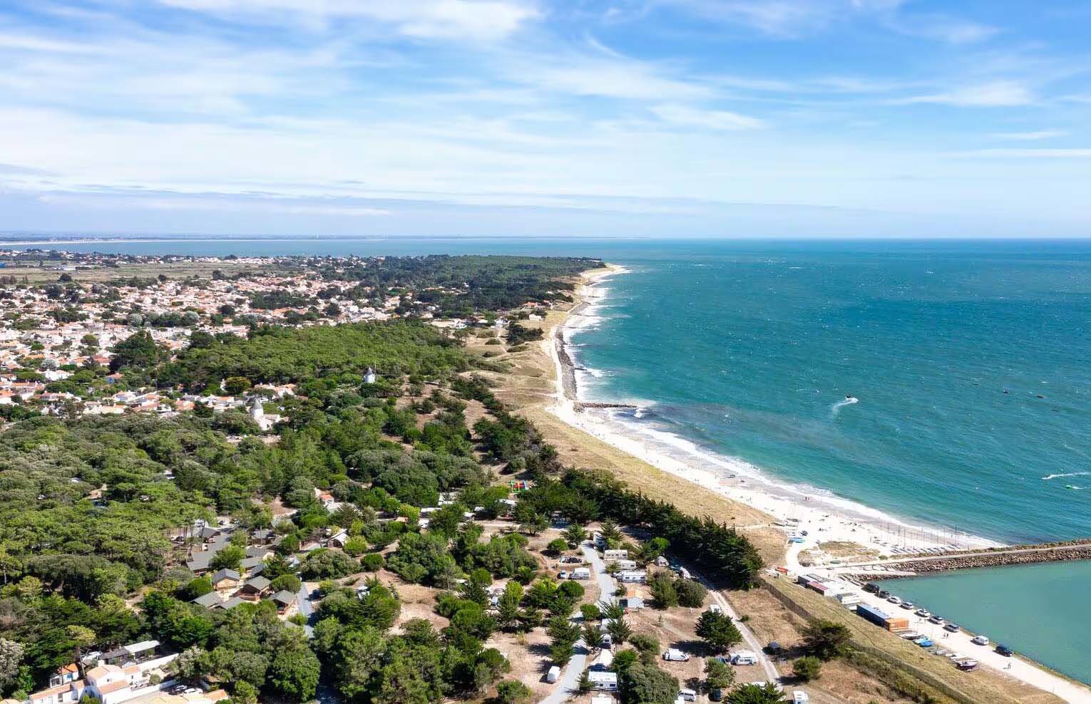 Het eiland Île Noirmoutier heeft alles in huis voor een topvakantie, zo zijn er de uitgestrekte bossen, de zoutpannen, de oesterbanken en natuurlijk diverse gezellige havenstadjes zoals Noirmoutier-en-Île. De camping is een goede uitvalsbasis om dit mooie eiland te ontdekken. Breng ook zeker een bezoek aan het eiland Île de Yeu. Watersporters halen hun hart op vanwege de diverse mogelijkheden in de directe omgeving van de camping.