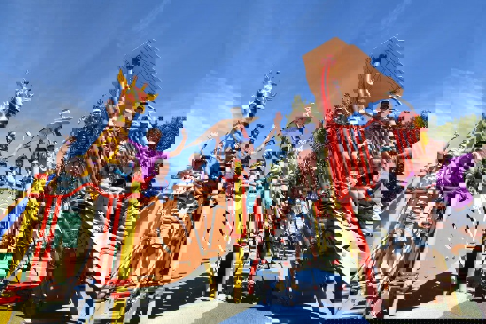 - Speeltuin met glijbanen, hutten, klimtoestellen