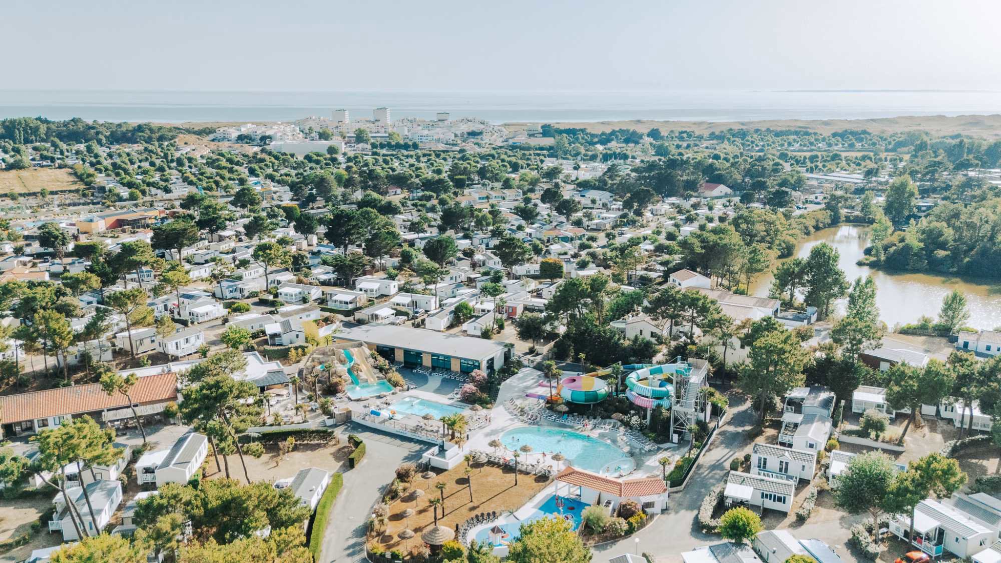 Viersterrencamping Le Tropicana ligt op slechts 800 m van één van de mooiste stranden van de Vendée; Saint Jean-de-Monts. En het zwembad is een echt tropisch paradijsje. Languit op een ligstoel onder een rieten parasol. In volle vaart tussen de rotsen door glijden. En op z’n tijd een ijsje natuurlijk. Voor de allerkleinsten is er een pierenbad. En binnen zwemmen kan ook. Of stap de Hammam in. Op en top ontspanning!