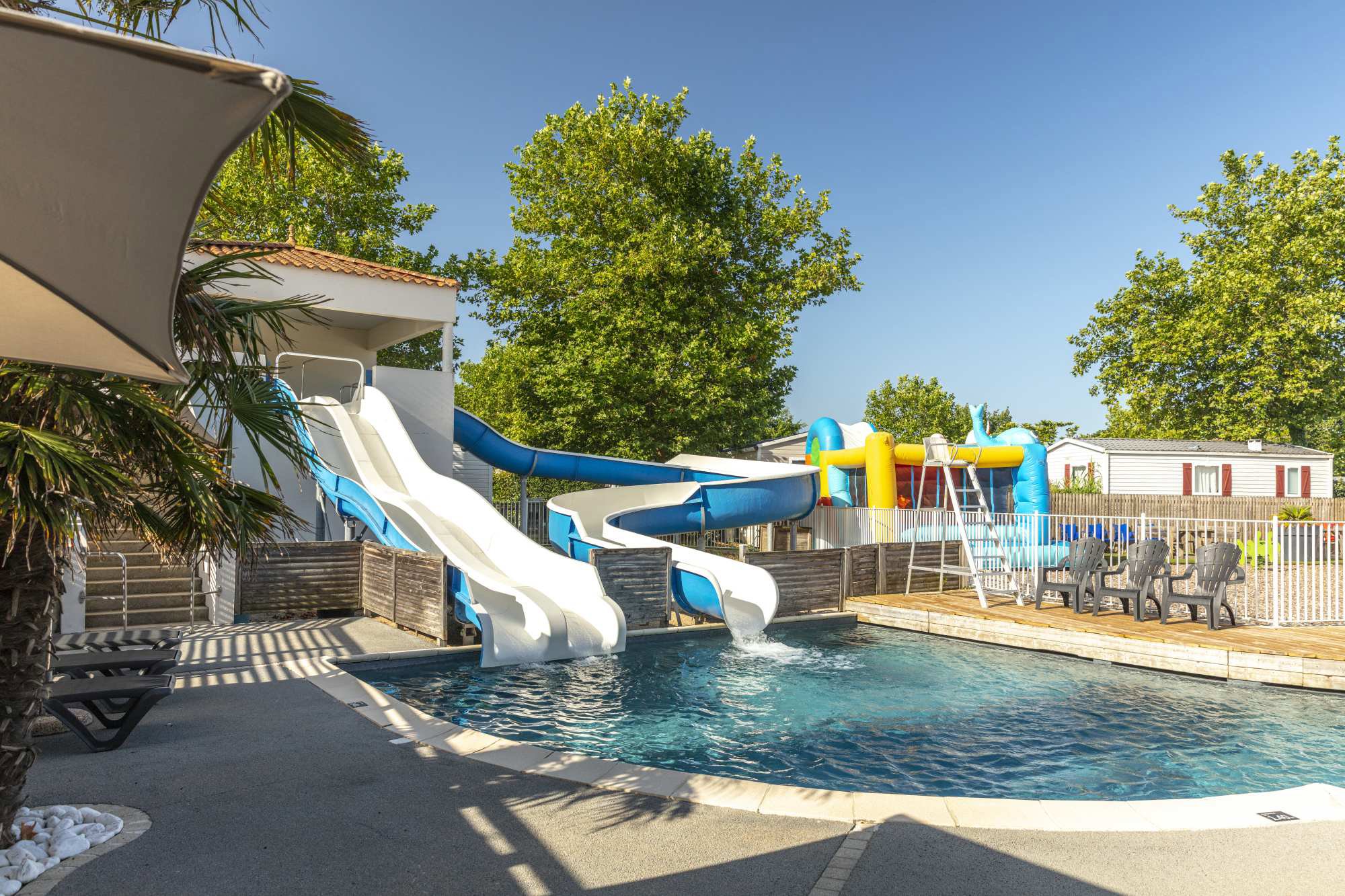Camping Loyada beschikt over een groot zwemparadijs van 300 m² met waterglijbanen en een overdekt zwembad. Hier kunnen de kinderen zich uitleven en nieuwe vriendjes maken, terwijl jij van de zon geniet aan de rand van het zwembad.