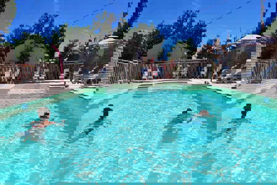 Behalve een leuke speeltuin vind je op deze kleinschalige camping ook een mooi zwembad met terras. Bij het zwembad is een gezellig terras voor een drankje en klein hapje. Voor de grotere boodschappen moet je even de camping af, maar dat is slechts een paar honderd meter.