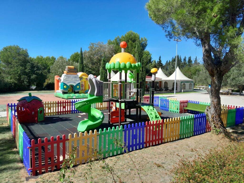 Zo is er een fijn zwembad met klein peuterbadje, hier wordt regelmatig aquagym gegeven in het hoogseizoen. Bij het zwembad wordt ook een animatieprogramma aangeboden in het hoogseizoen. Let wel op: bermuda's en lange zwembroeken mogen niet in het zwembad, neem dus een passende zwembroek mee. Voor de kinderen is er verder een klein speeltuintje en een opblaasbaar springkasteel waar ze nieuwe vrienden kunnen maken. Voor de sportieve gasten is er een multisportveld en een tennisbaan. Dagelijks kun je op de camping verse broodjes bestellen. In het hoogseizoen kun je genieten van een hapje en drankje in het restaurant. Verder is het terrein van de camping licht glooiend.