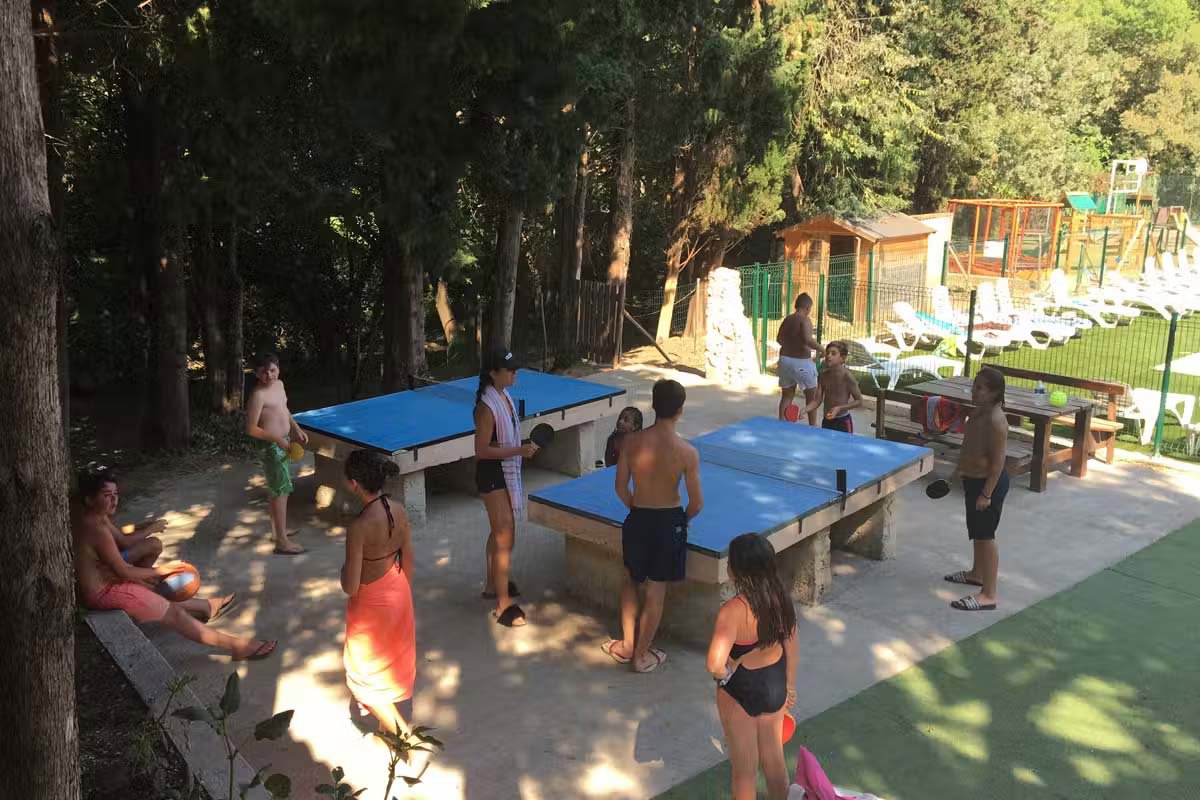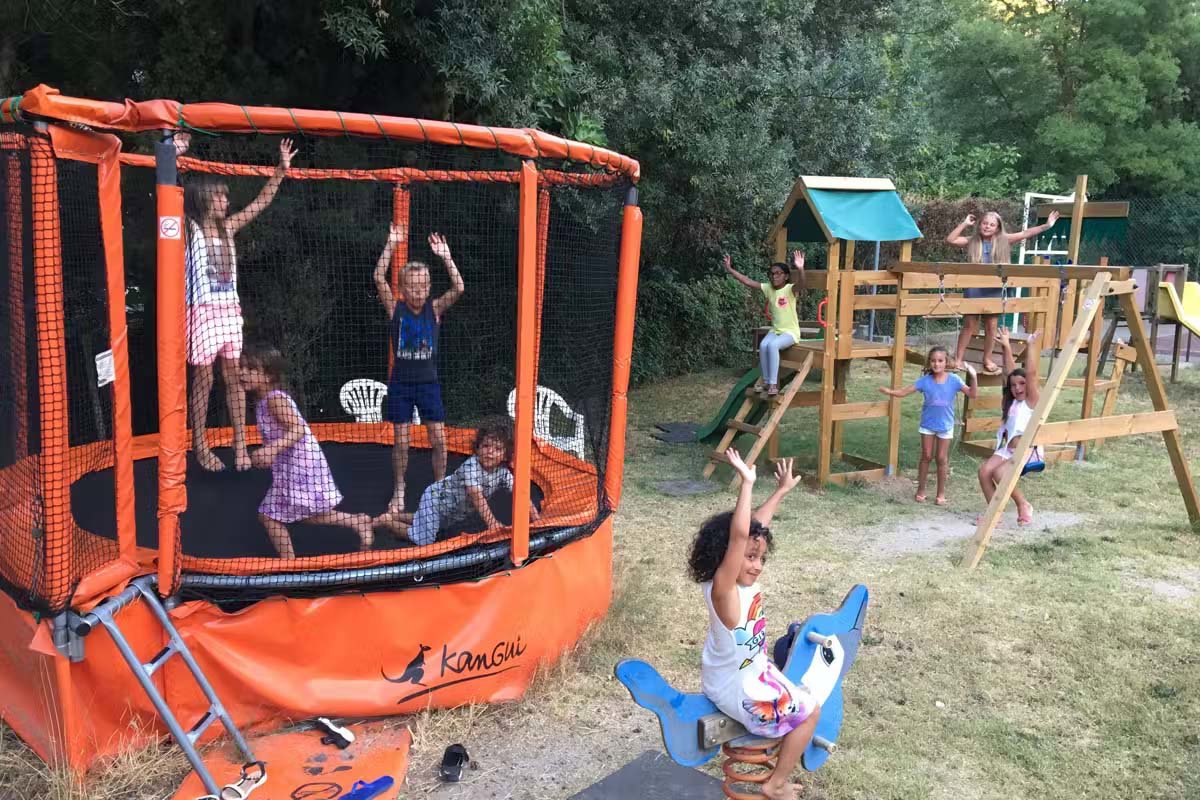 Er is een verwarmd buitenbad met apart kleuterbad, een speeltuin, trampoline en multisportterrein. Voor ouders zijn er fitnesstoestellen. In het hoogseizoen worden er activiteiten georganiseerd en kun je terecht bij het pizzarestaurant met bar. Ook is er een miniboerderij.