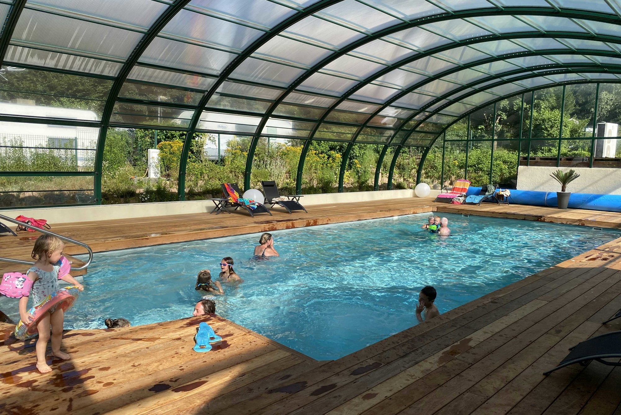 Ja, er is een verwarmd buitenzwembad dat ook overkapt kan worden op de camping en in juli en augustus worden er activiteiten georganiseerd.