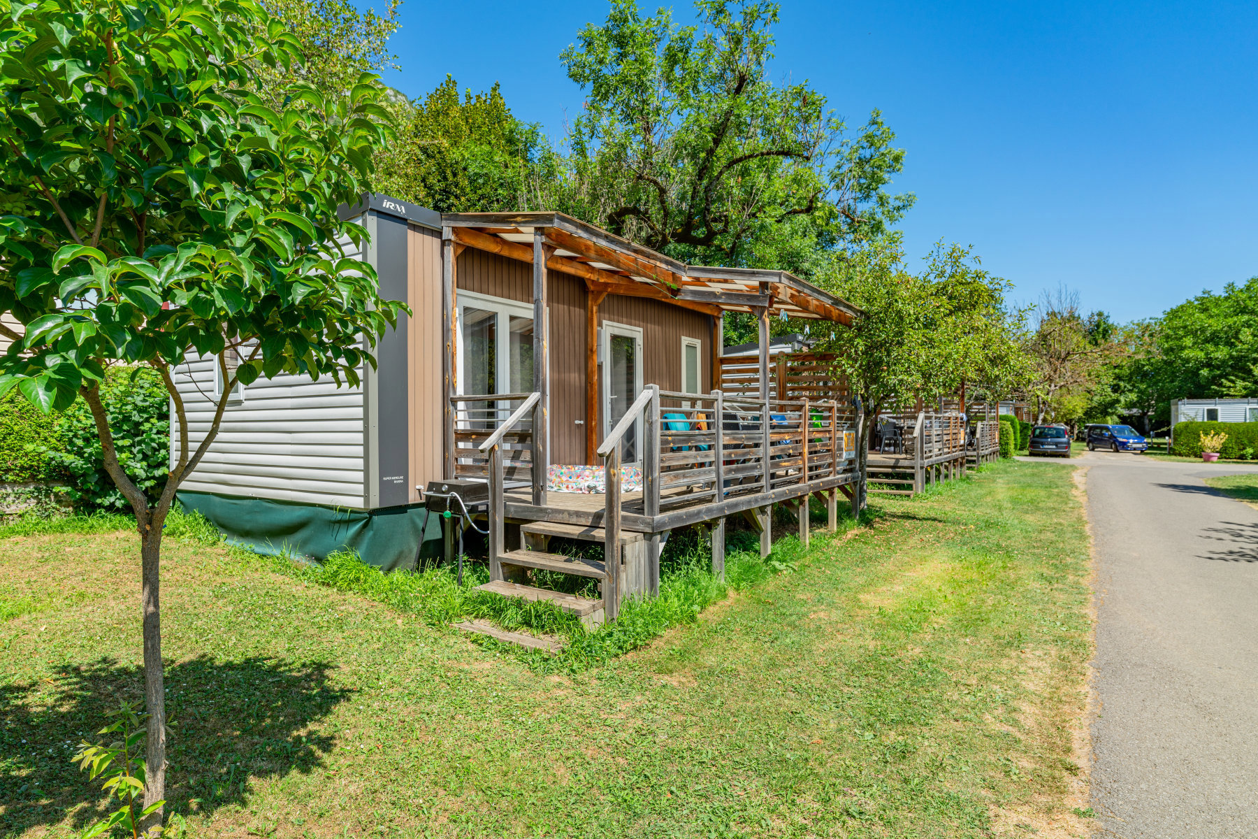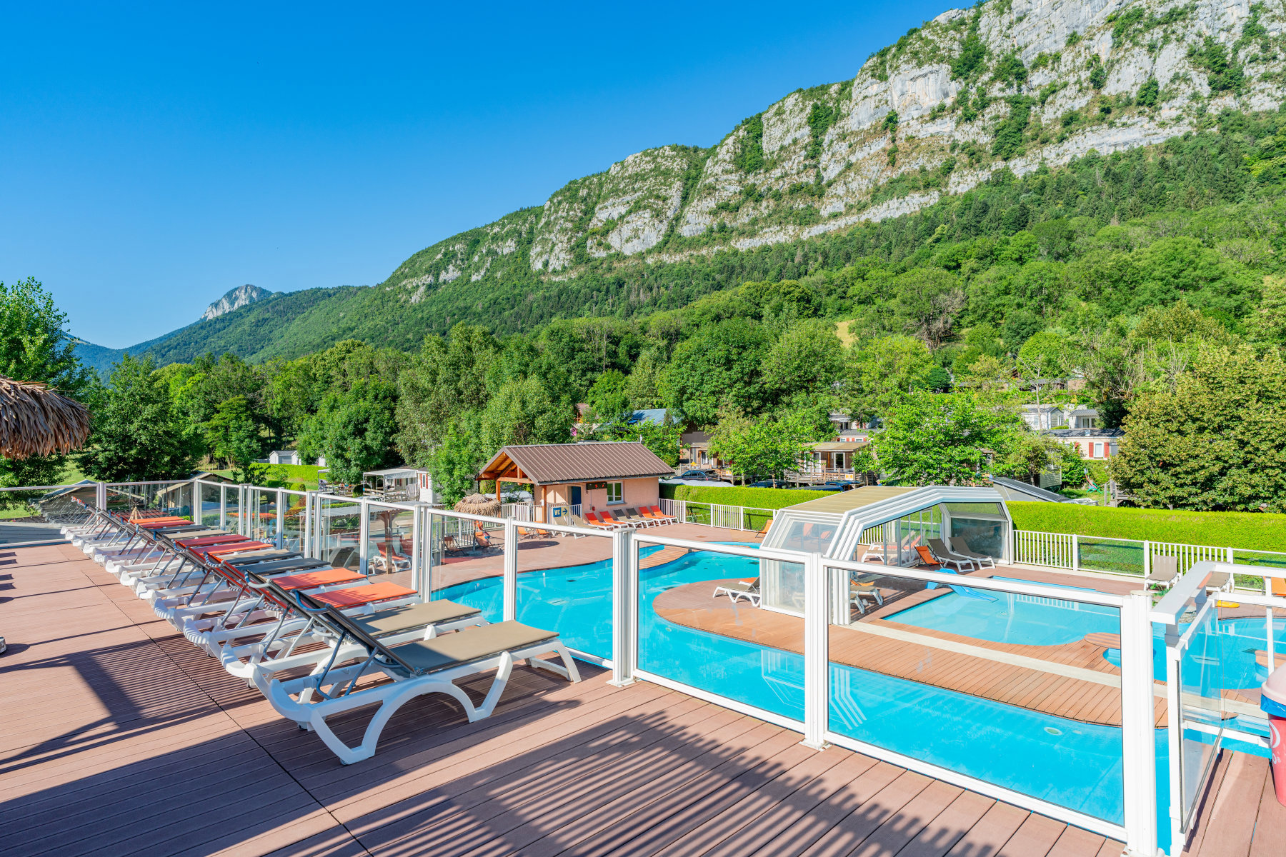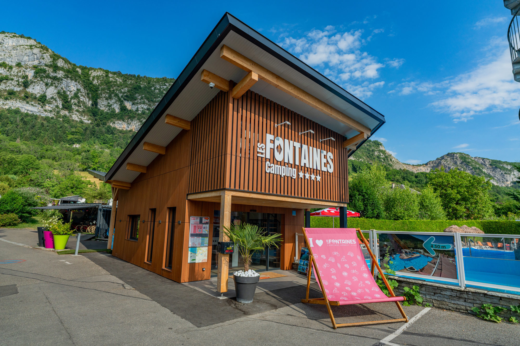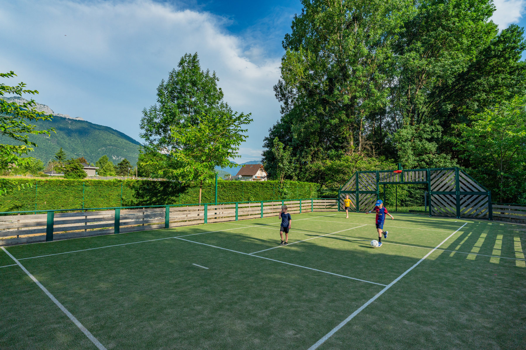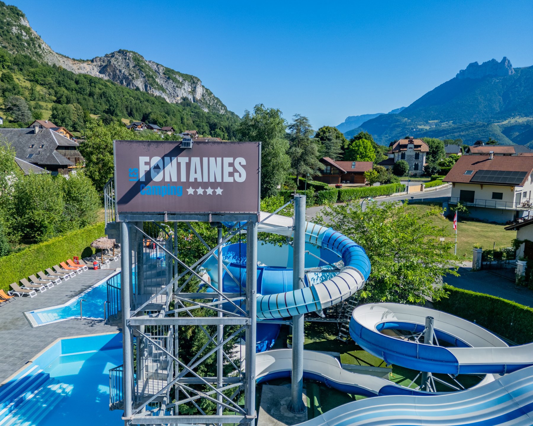 Klein en gemoedelijk, deels in terrassen aangelegd, met een schitterend uitzicht. Een comfortabele uitvalsbasis voor sportieve uitstapjes. Het kleine dorpje Chaparon grenst aan de camping en de winkels liggen 3 km verderop. Neem vanuit Duingt het landweggetje naar Lathuile en je komt vanzelf bij camping Les Fontaines en bij het Meer van Annecy. In het laagseizoen is het op het terrein heerlijk rustig. In juli en augustus gaat het er wat levendiger aan toe en zullen de iets oudere kinderen het prima naar hun zin hebben.
