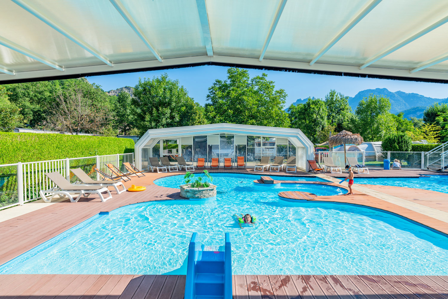 Op de camping vind je uitstekende voorzieningen. Er zijn twee mooie zwembaden, één met een overdekt gedeelte, en één met 4 glijbanen. Voor de jongste kinderen is er ook een peuterbad. Ook dit peuterbad en de jacuzzi mogen gezien worden op camping Les Fontaines.
