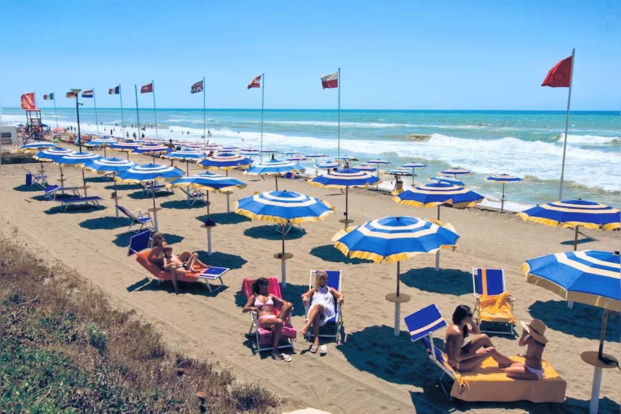 Wat direct in het oog springt is het grote zwembadcomplex met zwembaden. Rond de zwembaden staan palmbomen, wat een tropische aanblik geeft. Verder ligt camping Baia Domizia direkt aan het strand. Dit is één van de meest zuidelijke campings in het aanbod op huurtent.nl. En dat is te merken ook: al heel vroeg in het seizoen zijn de temperaturen aangenaam warm.