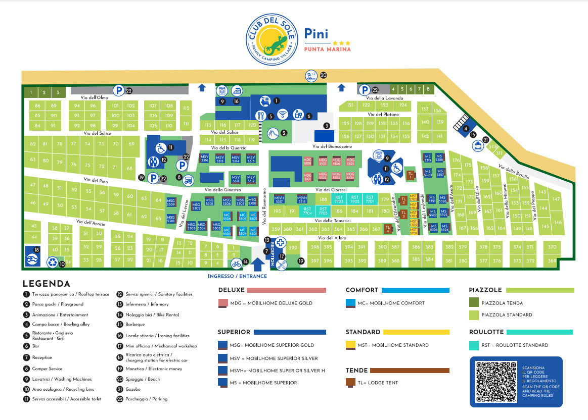 Del Sole Pini Boutique Resort is een viersterren camping aan de Italiaanse Oostkust bij het plaatsje Punta Marina (Ravenna). Deze geheel vernieuwde camping aan de Adriatische kust heeft mooie nieuwe lodges en ligt direct aan het brede strand. De camping zelf is mooi groen aangelegd en wordt omgeven door dennenbossen. De camping ligt op korte afstand van een mooi natuurgebied de Po-Delta. Geniet 's avonds van een hapje en drankje en de prachtige zonsondergang vanaf het mooi panoramaterras bij het aantrekkelijke restaurant.Een kindvriendelijk verblijf en een fijne strandvakantie