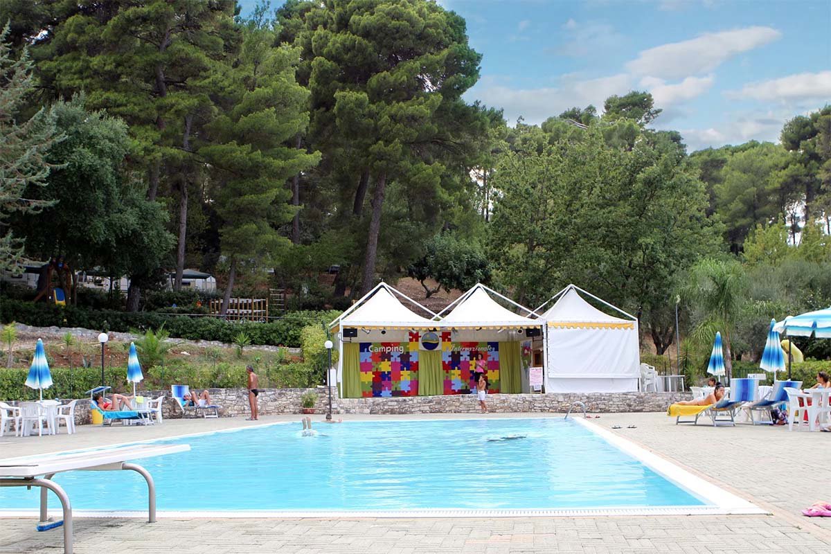 Op de camping kun je ook een frisse duik nemen in het zwembad. Bij het zwembad is ook een gedeelte bestemd voor de jongste bezoekers. Parasols en ligbedden zijn bij het zwembad te huur. Een badmuts dragen is verplicht. Het zwembad is geopend van juni tot half september (afhankelijk van de weersomstandigheden).