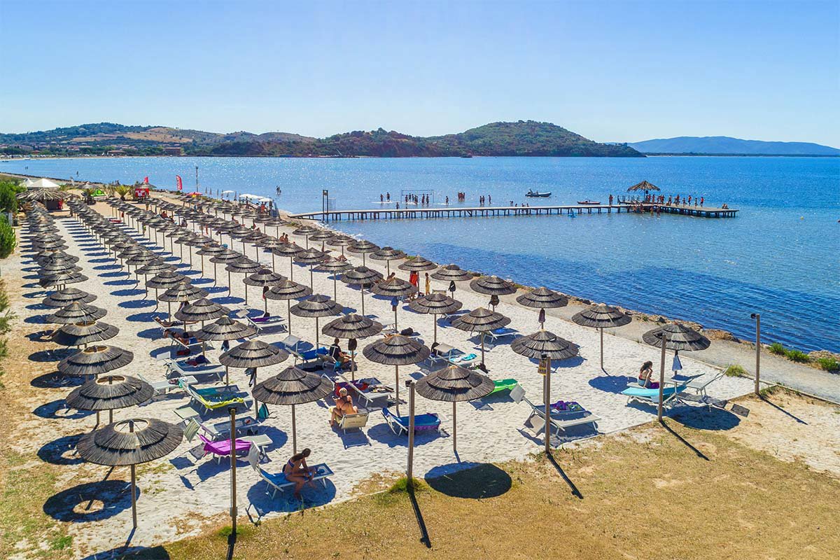 Op 2 km van camping Talmone Village ligt het dorpjeTalamone, een charmant vissersdorpje gebouwd op een uitstekende rots . Het dichtstbijzijnde strand ligt op 500 m van de camping. Op het privé-strand van de camping heb je de beschikking over 2 ligbedden en een parasol. Ook worden op het strand diverse activiteiten georganiseerd. Een deel van dit strand is langzaam aflopend en dus kindvriendelijk. Het is een klein zandstrand en ideaal voor watersportliefhebbers. Je kunt er windsurfen, kitesurfen waterfietsen en er zijn kano’s te huur.