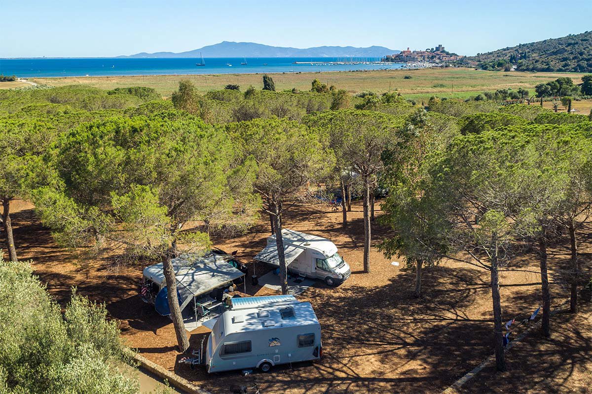 Camping Talamone International is een prachtige terrassencamping gelegen tegen een met pijnbomen begroeide heuvel in de Toscaanse Maremma. In de baai van Talamone, met een schitterend uitzicht op het gelijknamige vissersdorpje van Etruskische oorsprong, de Middellandse Zee en zelfs Elba, is dit een heerlijke plek om je kampeervakantie door te brengen. De camping biedt voor elk wat wils; animatie tijdens het hoogseizoen, een heerlijk zwembad, tennisbaan, golfoefenterreintje, sportveld, de mogelijkheid tot paardrijden etc.Wat is Toscane toch betoverend mooi!