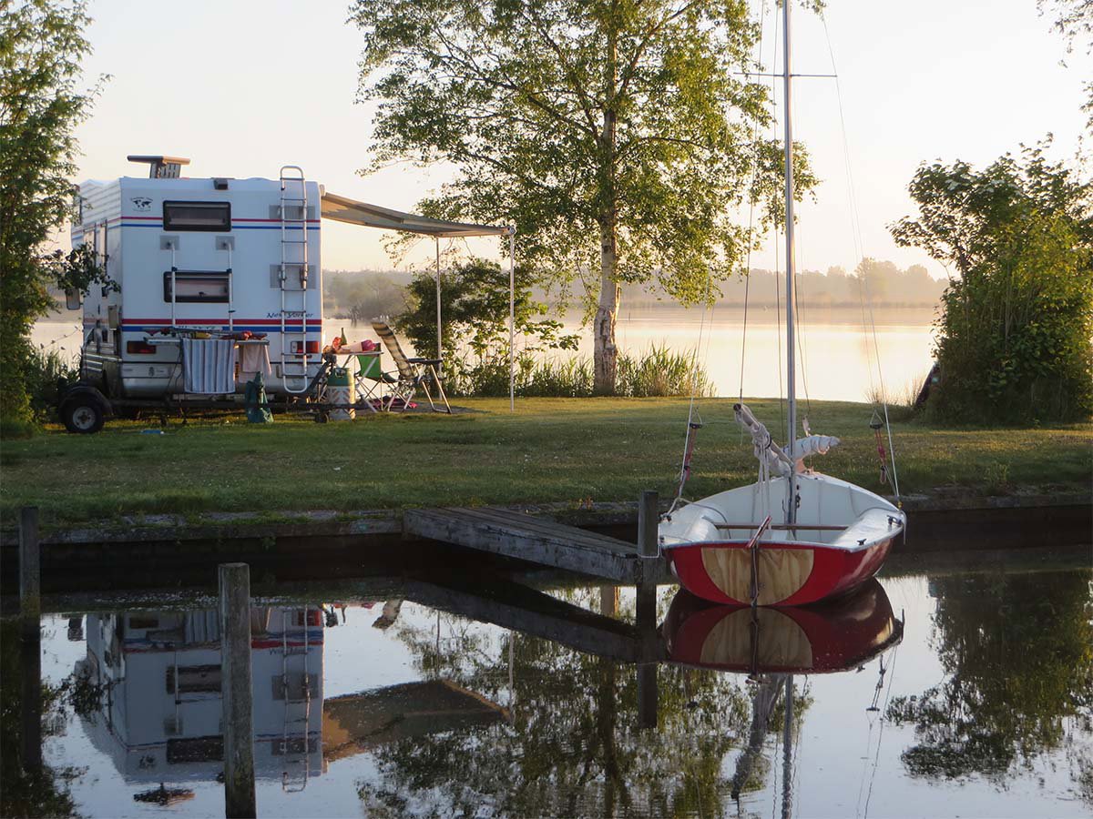 Je verblijft in een rustige en groene omgeving direct aan en bij het water