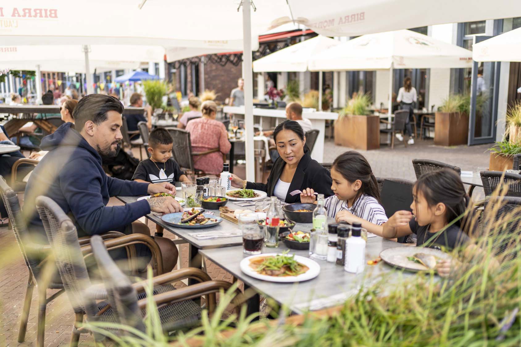 Aan het plein is een restaurant gevestigd ‘Proeflokaal Eten’, gelegen naast ‘Proeflokaal Drinken’. Beide Proeflokalen beschikken over een groot terras met zitjes en parasols waar een hapje en drankje genuttigd kunnen worden. Ook is er een dinerkaart voor de kleintjes. Voor de snackliefhebbers is er een mobiele snackbar aan het plein. En zonder ijs is een vakantie natuurlijk niet compleet. Bij de ijs-truck is Italiaans schepijs verkrijgbaar in alle smaken. Er is ook een overdekt zwembad, minimarkt, diverse speelveldjes met speeltoestellen voor de kinderen, kinderanimatie (alleen in de zomer) en een fitness studio. Ter plaatse kan er tegen betaling een massage worden geboekt.