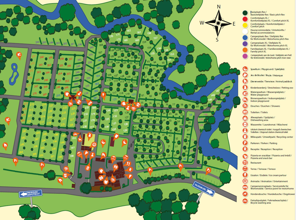 De camping ligt in het natuurgebied Meerssenerbroek. Je kunt vanaf de camping diverse wandel- en fietstochten maken in het natuurlijke beekdal 'Beneden Geuldal'. Bezoek de steden Maastricht en Valkenburg en je wilt niet meer weg uit deze prachtige regio. Maastricht met haar talloze restaurants, winkels en mooie monumenten en fantastische sfeer. Valkenburg met de kasteelruïne en diverse bezienswaardigheden en restaurants.