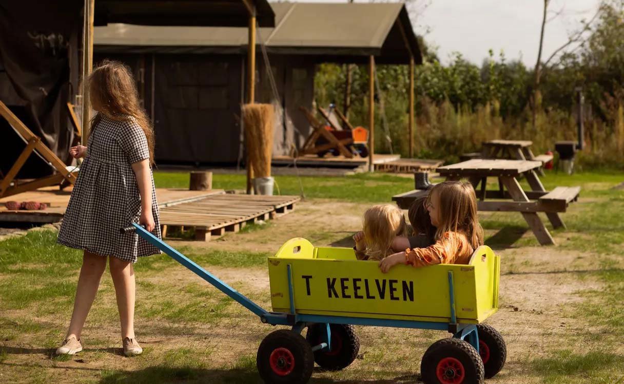 Op BoerenBed boerderijcamping Het Keelven bij het Brabantse Someren beleven jonge gezinnen een fijne vakantie. Achter op het erf van Het Keelven staan drie compleet ingerichte tenthuisjes met warme privé douche naast de tent en met uitzicht op de rijbak en de weilanden. Je logeert hier in alle comfort, met fijne bedden, een eigen keukentje, eethoek en een ruim terras om samen buiten te eten terwijl de paarden voorbij lopen.Hier draait alles om paarden.