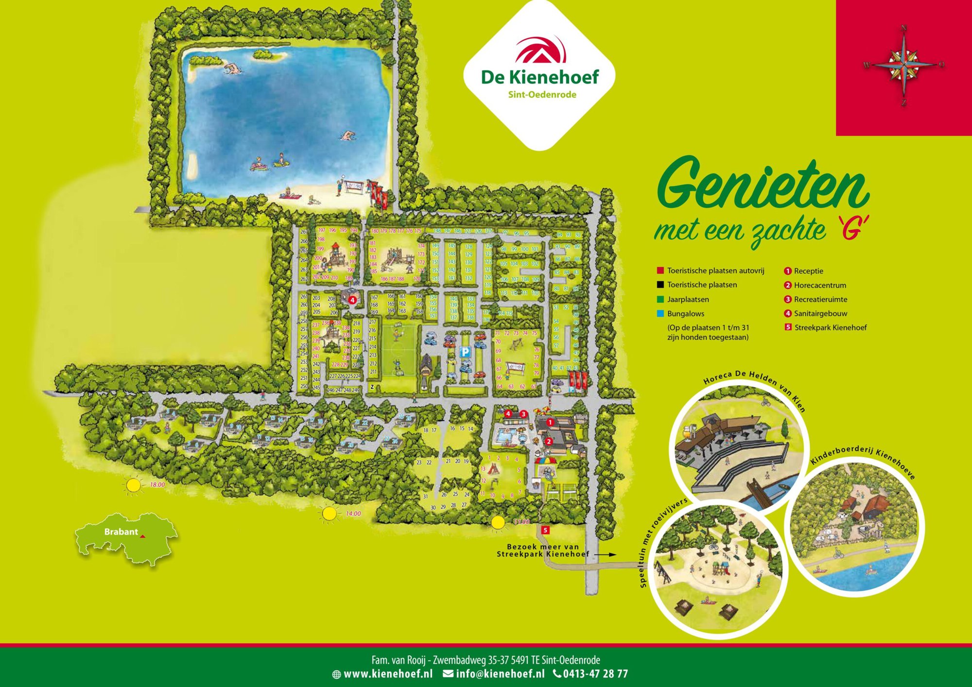 Ben je op zoek naar een fijne camping in Noord-Brabant? Camping de Kienehoef is gelegen aan een prachtig en groot recreatiepark midden in natuurgebied de Meierij. De camping is een ideale startlocatie voor prachtige fiets en wandelroutes. Maar ook een dagje relaxen kan prima! De Kienehoef ligt aan de rand van het pittoreske dorp Sint-Oedenrode. Met de fiets ben je er in 5 minuten en kom je door een prachtig natuurpark met kinderboerderij, speeltuin en vijver. In Sint-Oedenrode vind je diverse winkels en terrasjes. Streekproducten vind je onder andere bij de kaasboer en de plaatselijke slager. Zeker de moeite waard om eens een kijkje te nemen!Kindvriendelijke camping in Noord-Brabant