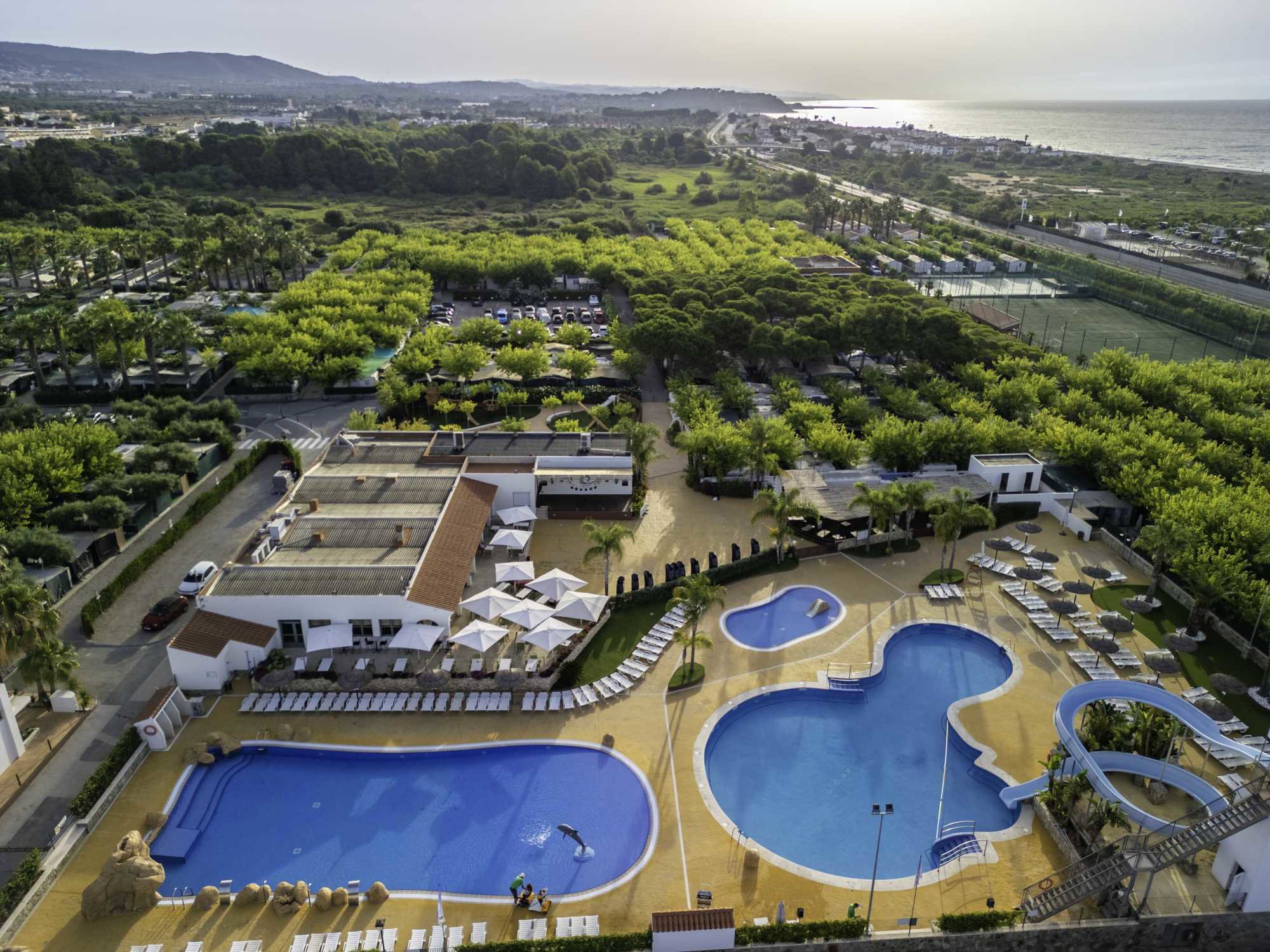 De zon schijnt hier gemiddeld zo’n 2500 uur per jaar, dus afkoelen in de Middellandse Zee is echt geen straf. Ook kun je een duik nemen in het zwembad van Creixell. En de leuke waterglijbaan en de aquarobiclessen zorgen voor heel wat gezellige en zonnige uurtjes. Ook kun je lekker fit blijven op het sportveld. En natuurlijk heb je trek na zo'n actieve dag, dus een bord vol Spaanse hapjes in het restaurant maakt deze vakantiedag compleet. En de jongste gasten? Die vervelen zich al helemaal niet want daar zorgt het animatieteam voor.