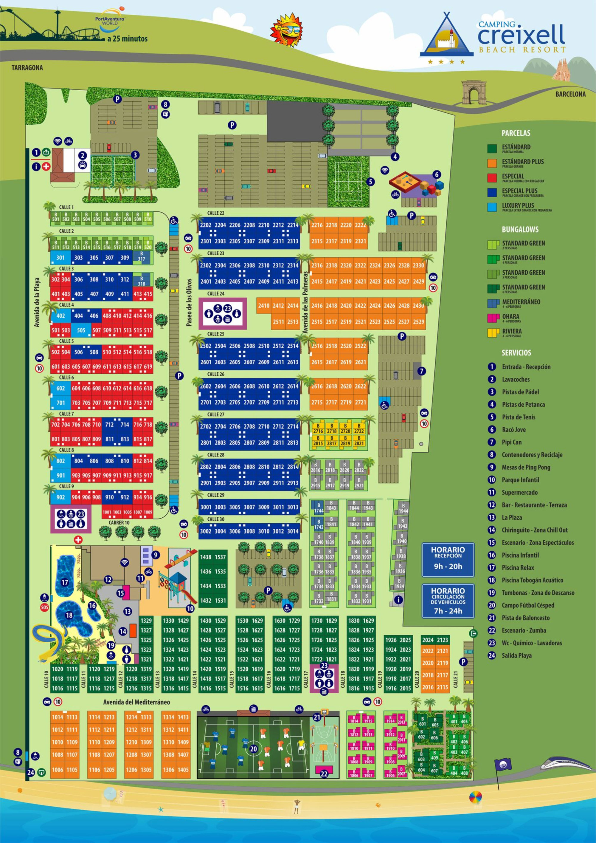 Op korte afstand van de prachtige stranden aan de Costa Dorada ligt Camping Creixell. Je vindt hier alle voorzieningen voor een fijne Spaanse vakantie. Het animatieteam kan niet wachten om haar programma te presenteren. Verder kun je zowel Tarragona als Barcelona bezoeken. Dus al met al een heerlijk vakantie-adres waar je een strandvakantie perfect kunt combineren met cultuur en een bezoek aan een paar fantastische steden in Spanje.