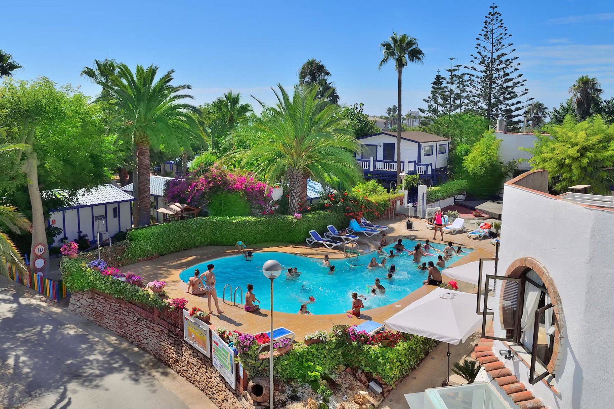 Er is een mooi, niet al te groot buitenzwembad waar je op warme dagen aangenaam verkoeling kunt vinden. Aan de echte zonaanbidders is ook gedacht: op het terras rond het zwembad staan mooie ligstoelen klaar. Het naastgelegen restaurant biedt uitzicht op het zwembad en heeft een uitgebreide kaart. Er zijn ook afhaalmaaltijden te krijgen. Verder is er een klein winkeltje met een zeer beperkt assortiment. Voor meer keuze ga je naar de supermarkten in het nabijgelegen Les Cases d’Alcanar. De receptie, restaurant, zwembad, de miniclub en een aantal speeltoestellen bevinden zich bij de ingang. Het dorp met vissershaven ligt op ca. 1 km afstand. Voor kinderen is er op de camping genoeg te doen. Daarnaast biedt de zee natuurlijk allerlei mogelijkheden om te vakantiedagen hier goed in te vullen.