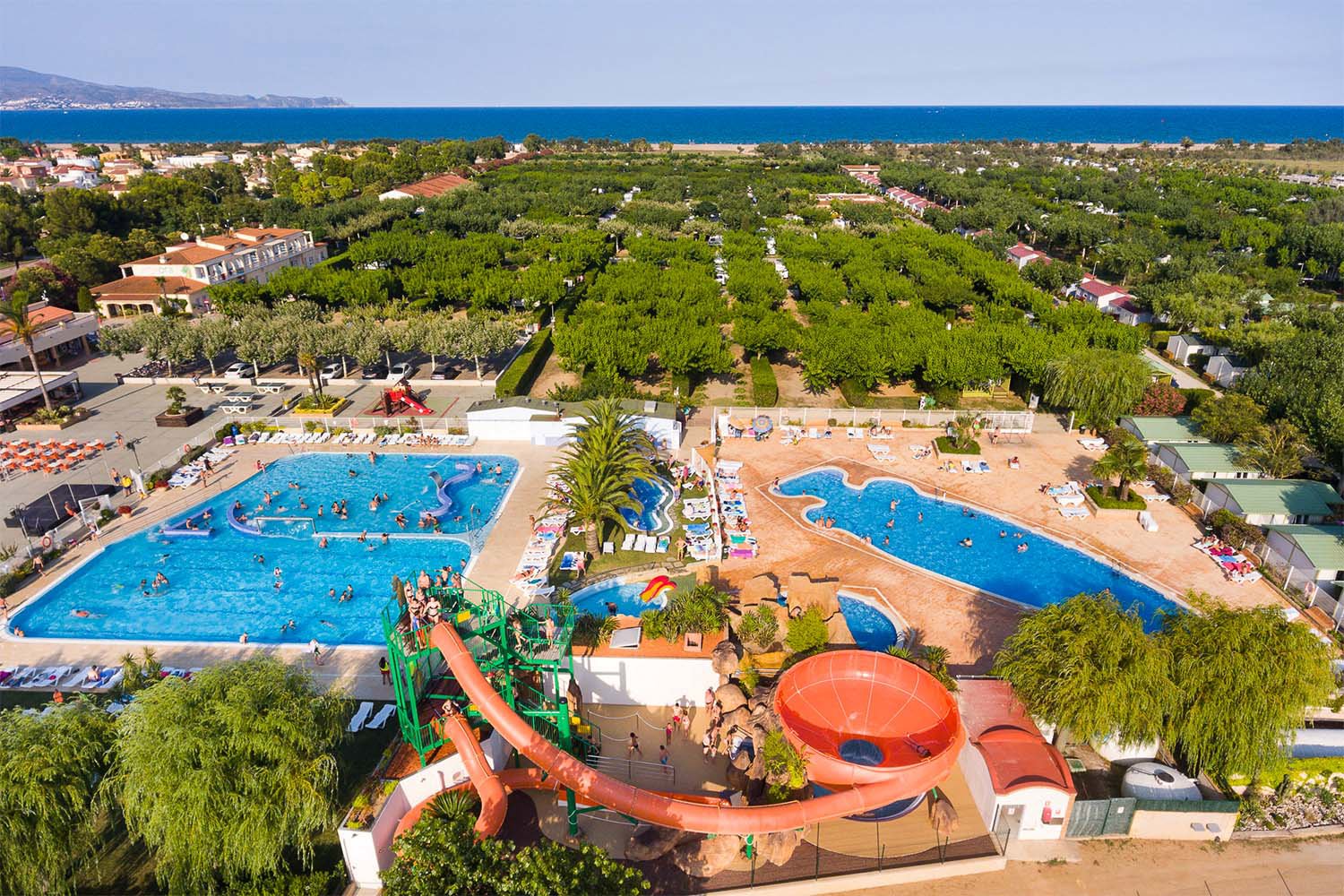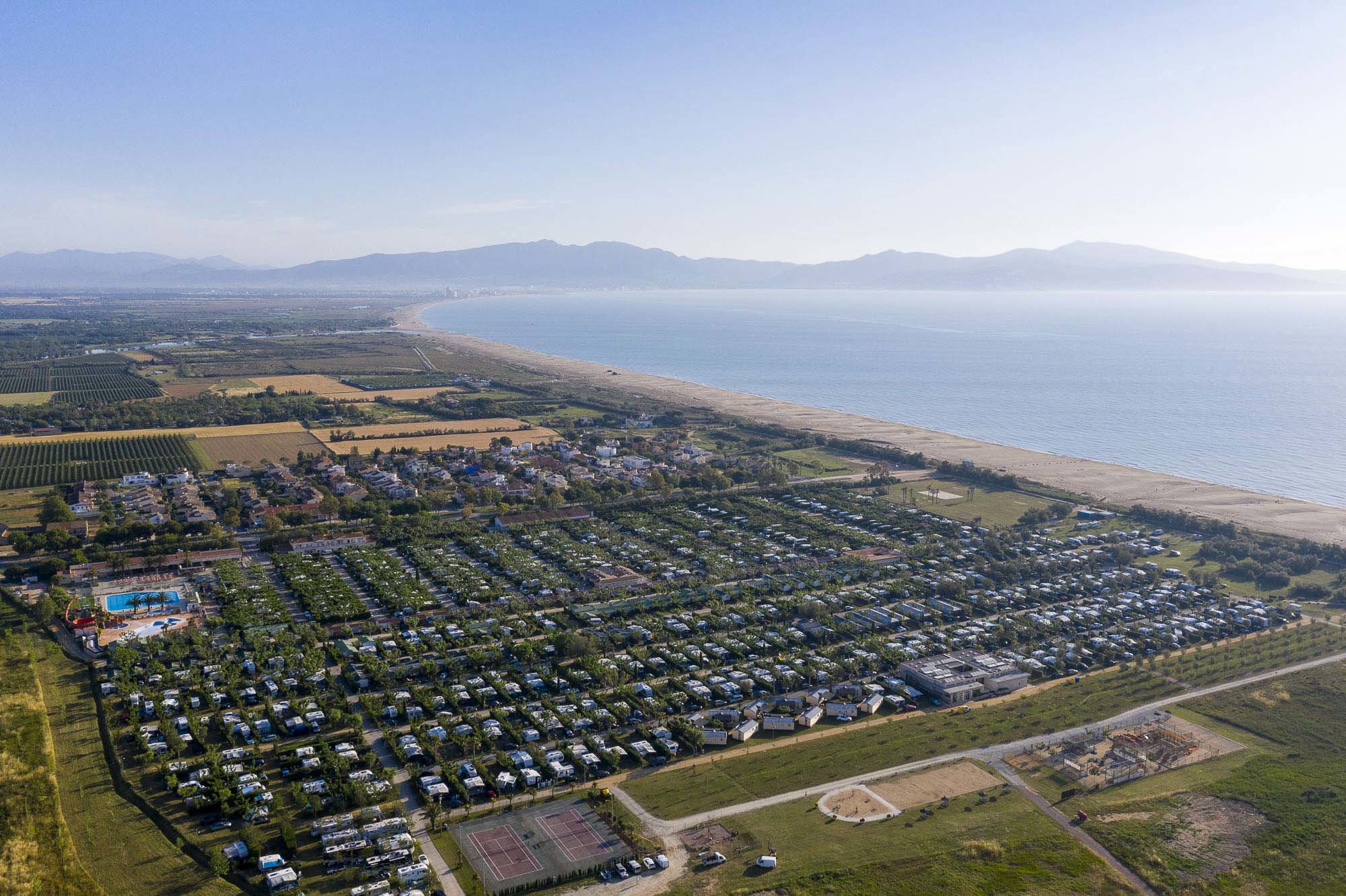 De camping ligt direct aan de baai van Rosas en heeft rechtstreekse toegang tot het strand. In combinatie met een mooi zwemparadijs en een apart peuterbad is dit een ideale plek voor gezinnen die zon, zee en waterpret willen combineren.