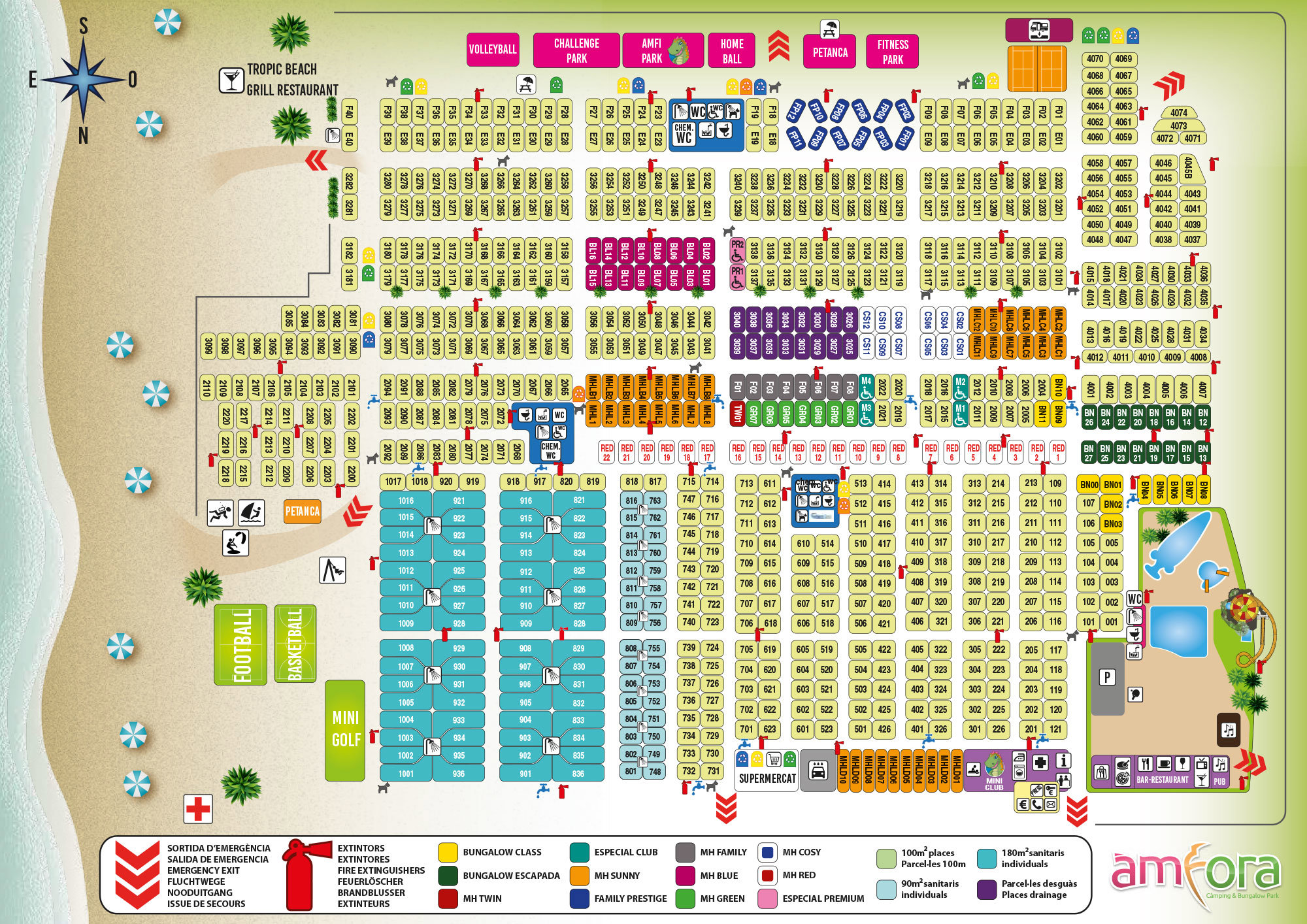 Camping L’Amfora , gelegen in de schitterende baai van Roses, heet haar kampeergasten van harte welkom. De viersterrencamping in Catalonië verhuurt bungalows, mobil homes, appartementen, bungalows voor mindervaliden en staanplaatsen van 100 tot 180 m2 met of zonder individueel sanitair (toilet en douche).