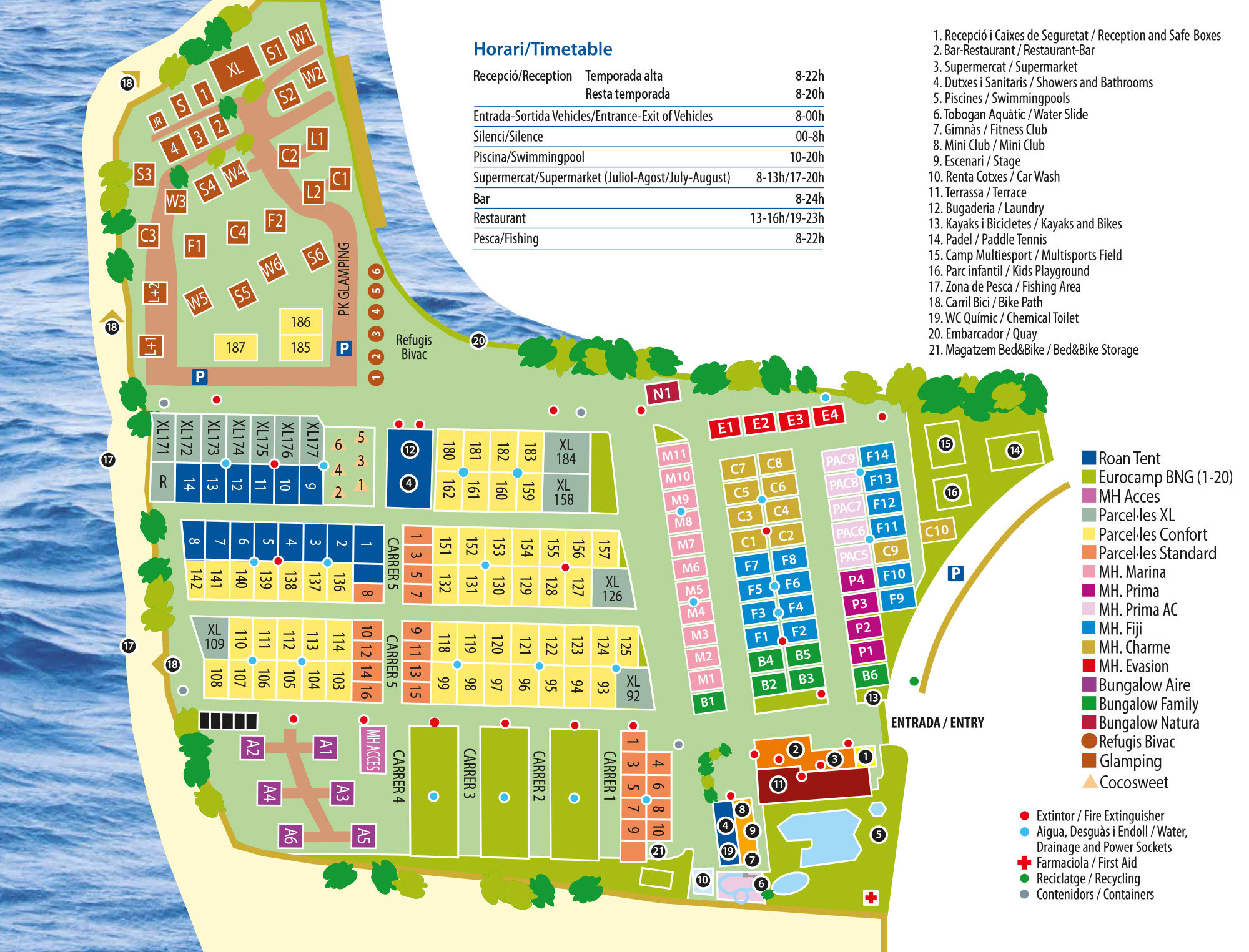 Niet te grote Spaanse camping. Zwembaden prima en strand met auto goed te bereiken. Zaten hier in onze eerste glampingtent, wat een luxe en mooie plek hadden wij. Wij hebben het na een keer eten in het restaurant opgegeven en gingen voortaan naar de restaurantjes in het dorpje, wel zo gezellig en veel lekkerder. Kortom een ideale camping voor jonge gezinnen. Voor tieners kun je beter verblijven op Duna.